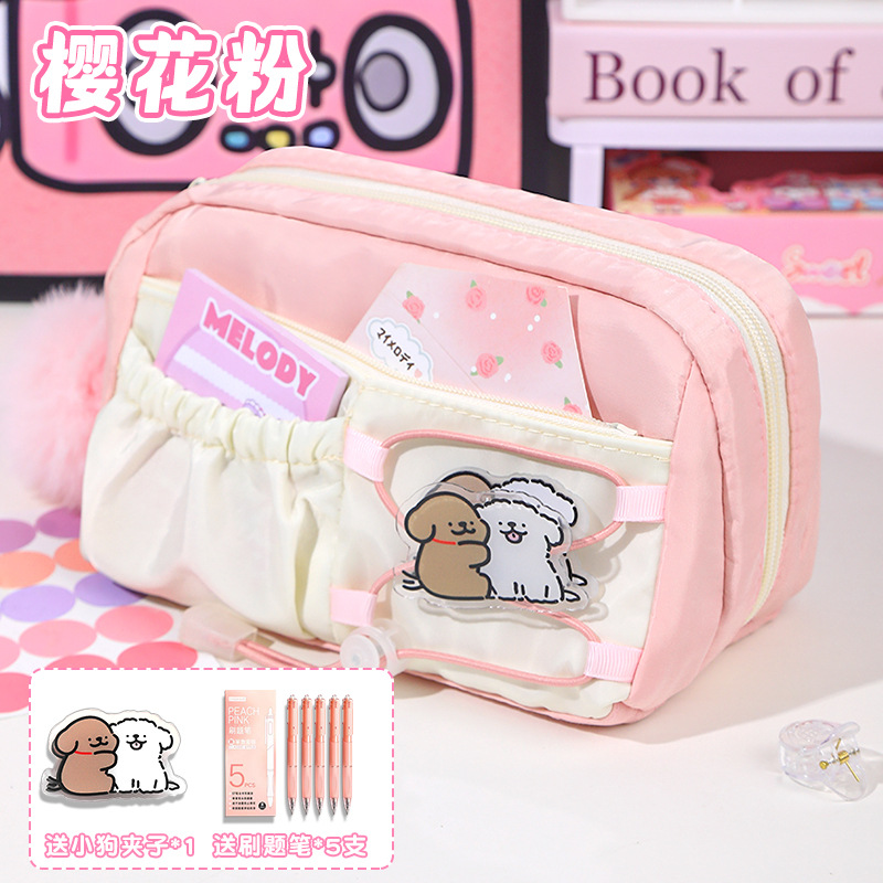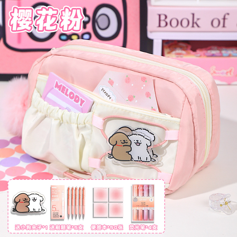 • [7단 대용량] 사쿠라 핑크/동색 젤펜 5개 + 강아지 클립 증정