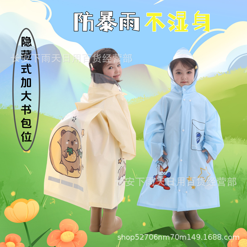 EVA 어린이 비옷 초등 및 중등 학교 보이지 않는 확대 학교 가방 패션 만화 두꺼운 환경 친화적인 긴 방수 및 방풍스토어 가기