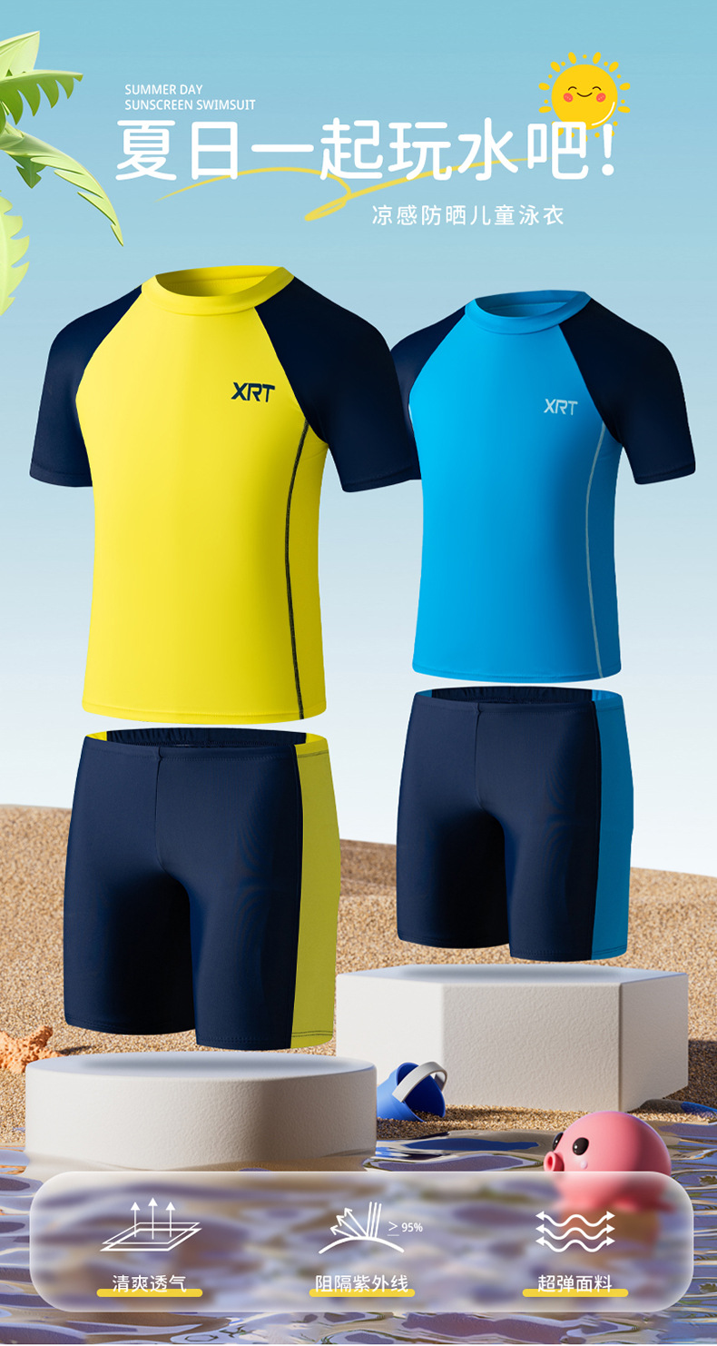 어린이 수영복, 남아용 스플릿 속건성 슈트, 큰 어린이, 뚱뚱한 소년, 어린이 및 학생 전문 훈련 수영 슈트스토어 가기