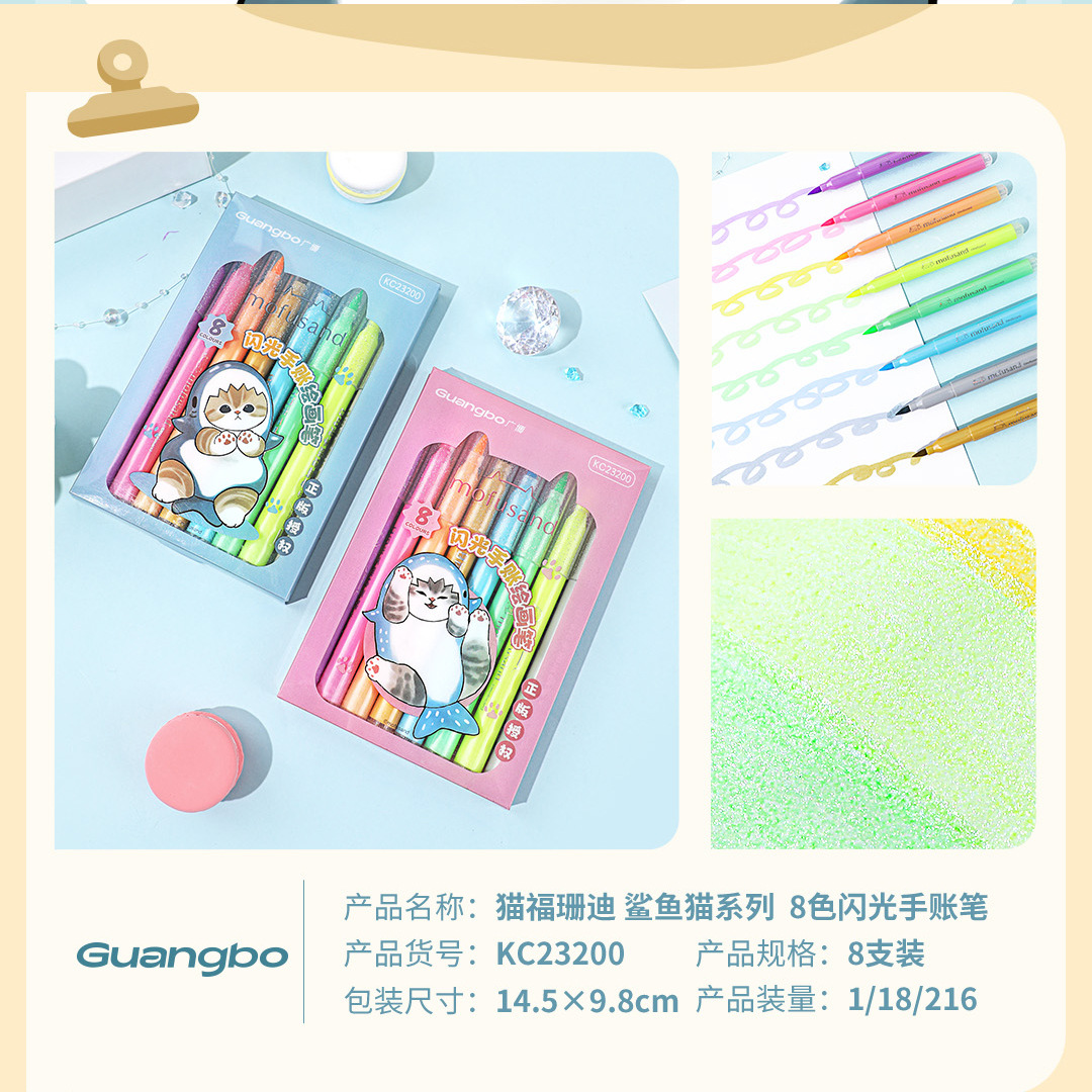 광보 문구 진짜 고양이 Fusandi 상어 고양이 시리즈 8 색 플래시 손 계정 펜 학생 낙서 마킹 펜