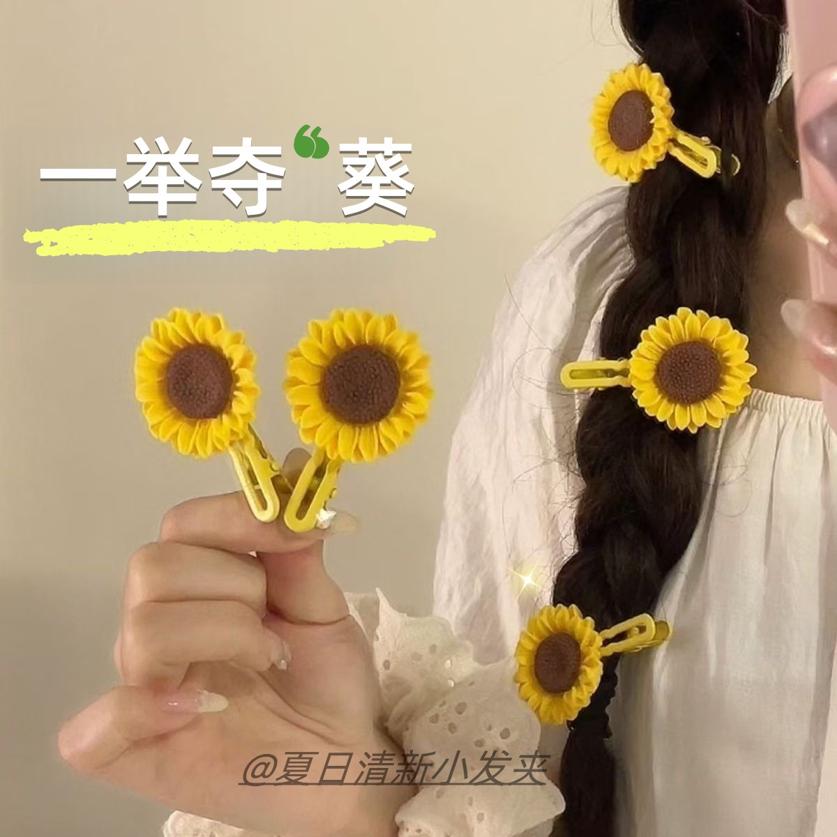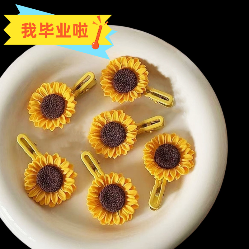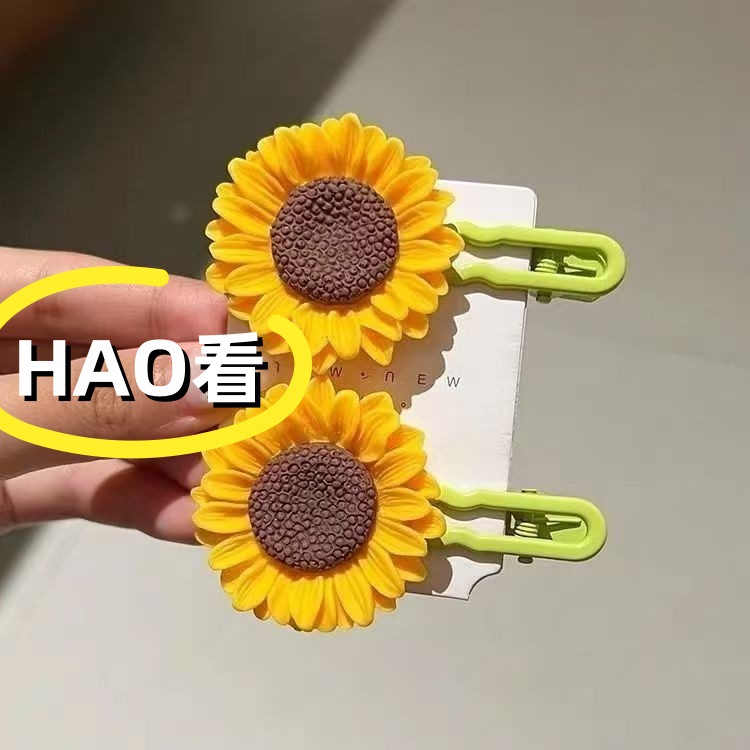 해바라기 헤어핀 달콤한 귀여운 만화 꽃 헤어핀 소녀 깨진 머리 뱅이 사이드 클립 덕빌 클립 헤어 액세서리 도매