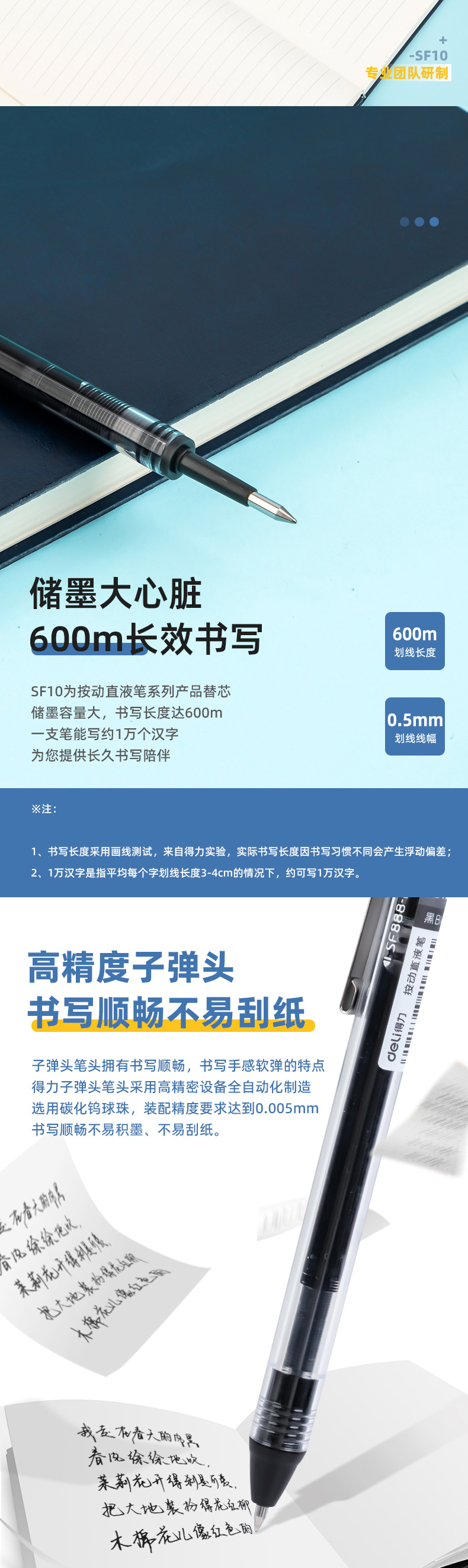 델리 SF10 프레스형 직선액체펜 리필 0.5mm 불릿팁이 깨지기 쉽지 않고 코어가 부드럽게 쓰여지는 블랙 리필