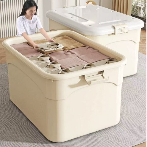 두꺼운 크림색 플라스틱 수납함, 대용량 침실 잡화/의류 보관함, 야시장 옷장스토어 가기
