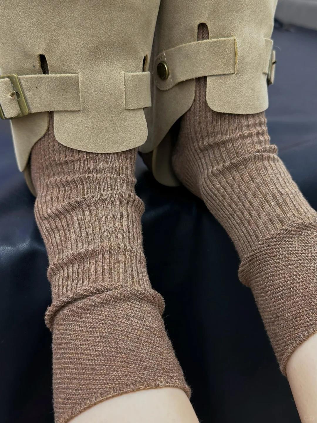봄과 가을 한국 스타일 ins 힐 천 라벨 종아리 양말 두꺼운 라인 니트 세로 줄무늬 단색 편안한 다용도 여성용 양말