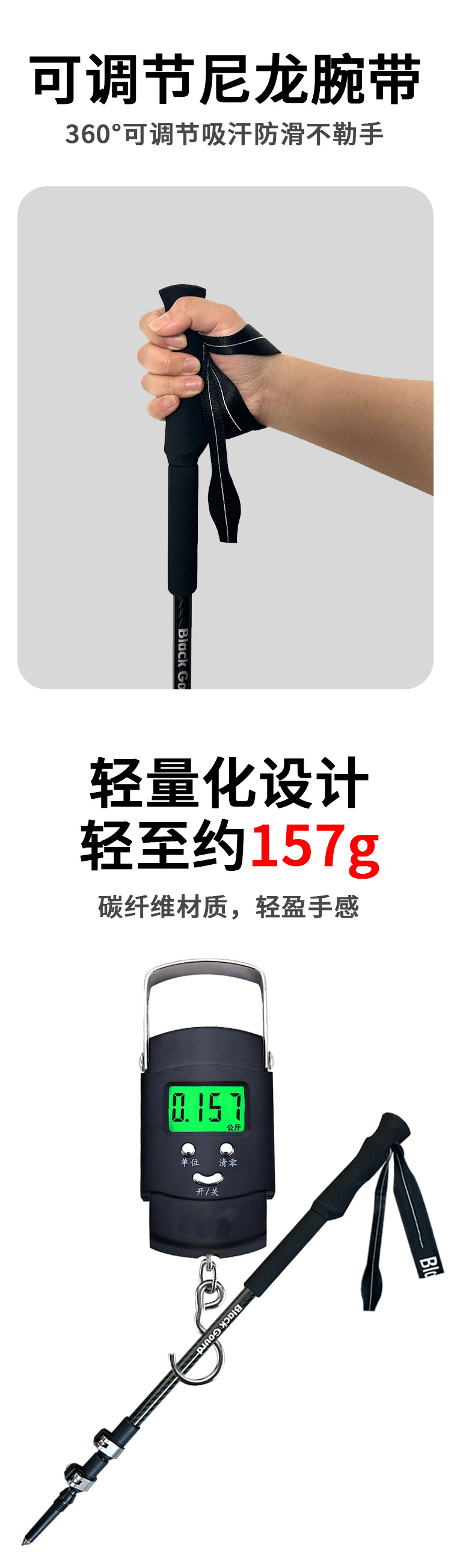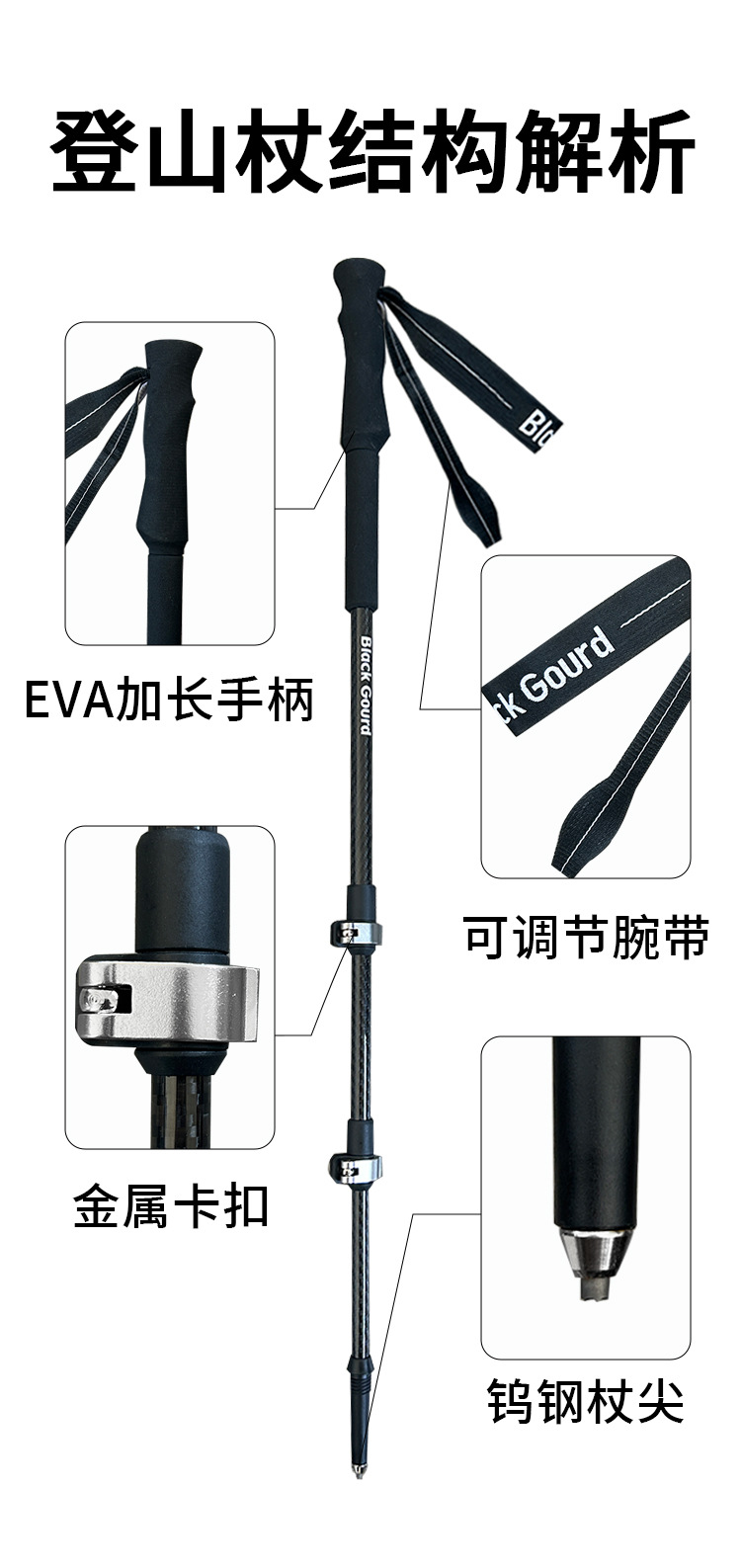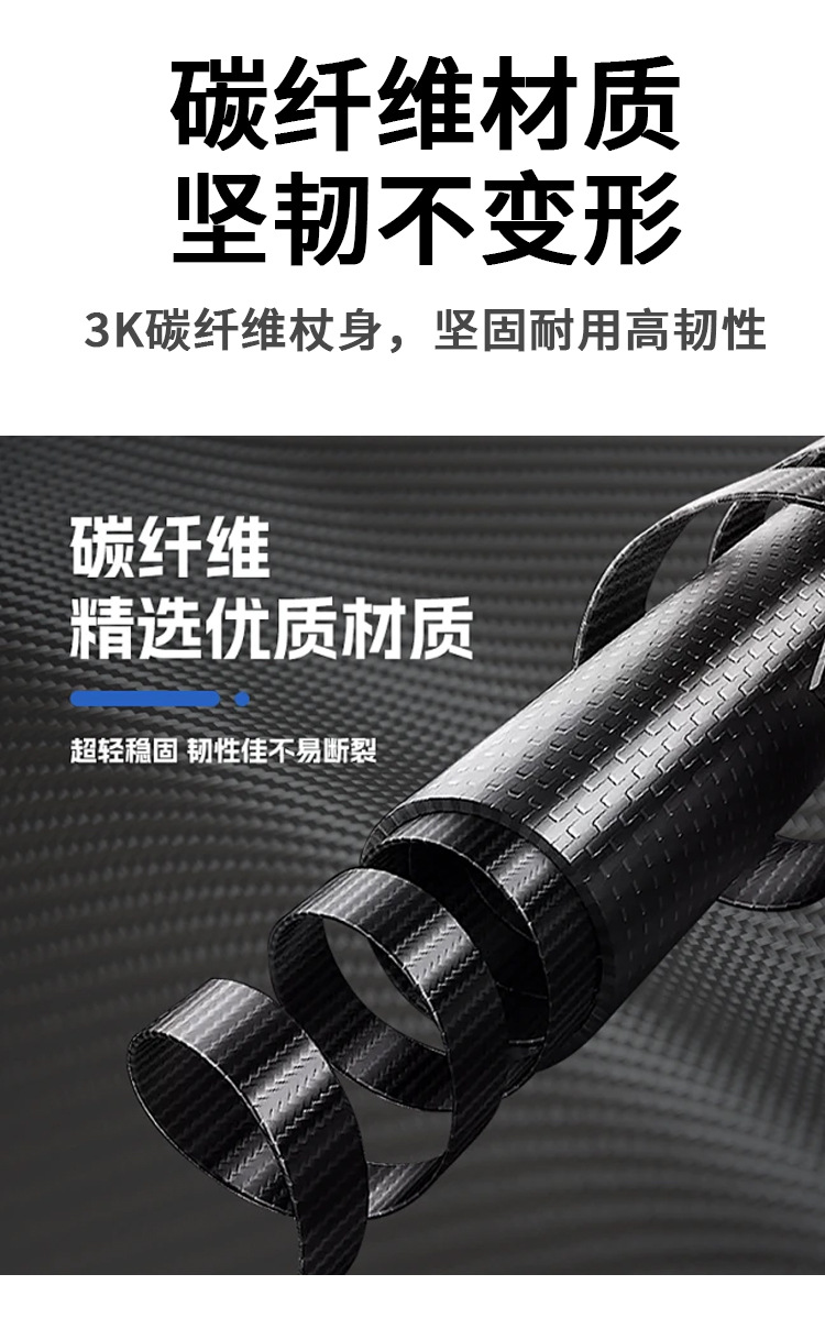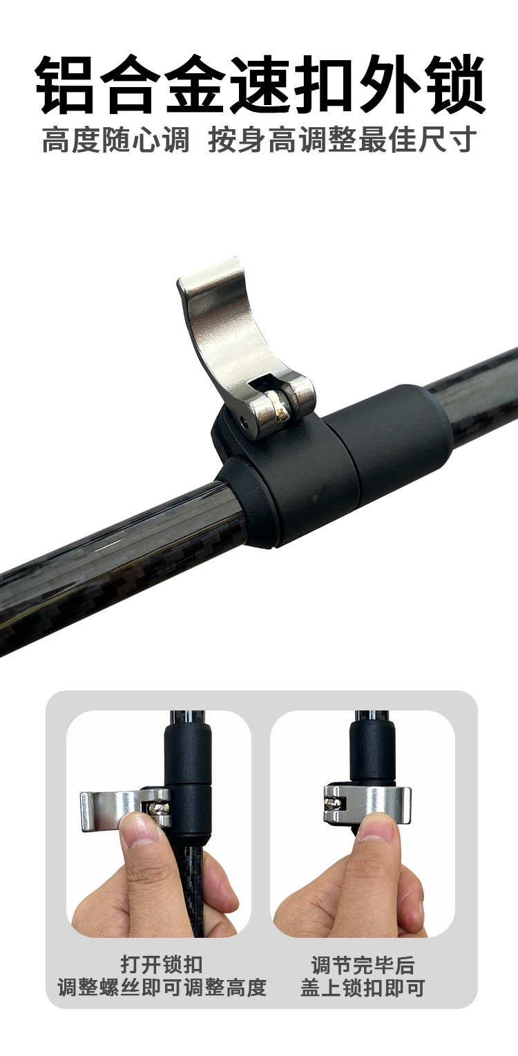 트레킹 폴 맞춤형 공장 레이저 마킹 실크 스크린 인쇄 탄소 섬유 야외 금속 버클 고강도 초경량 텔레스코픽 모델