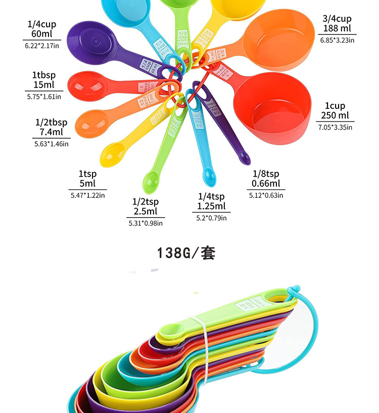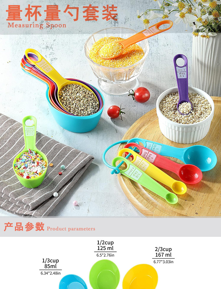 베이킹 도구 12피스 측정 컵 측정 스푼 컬러 밀크 파우더 스푼 타원형 인쇄 스케일 플라스틱 측정 스푼 측정 스푼