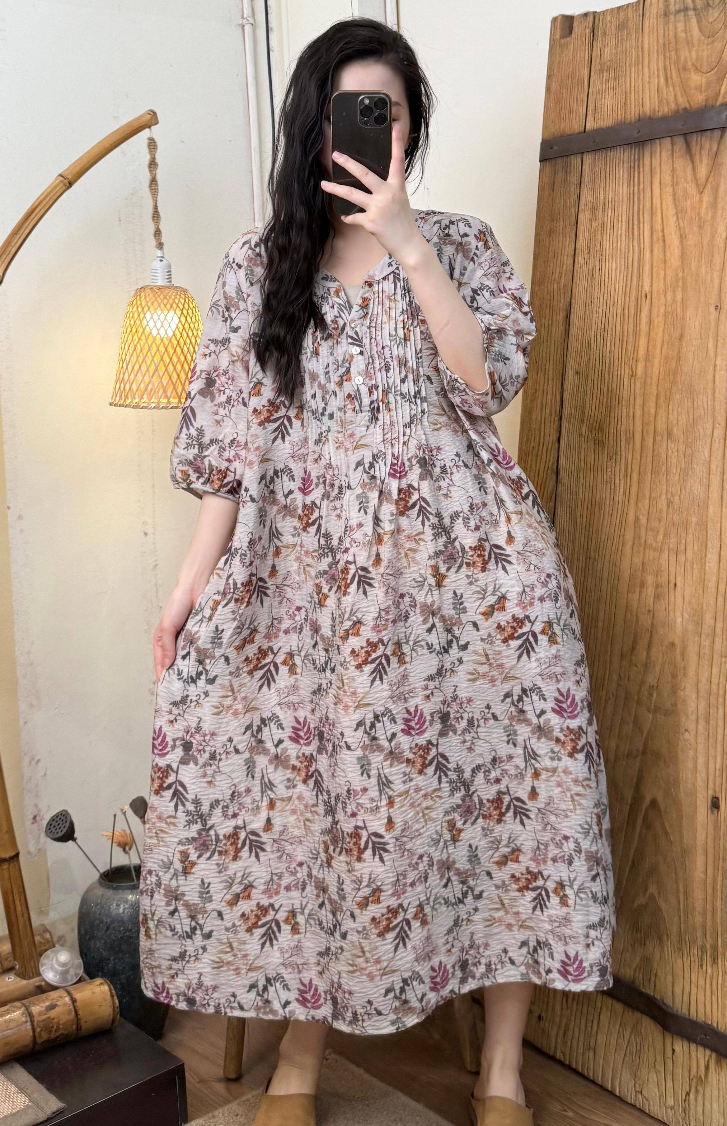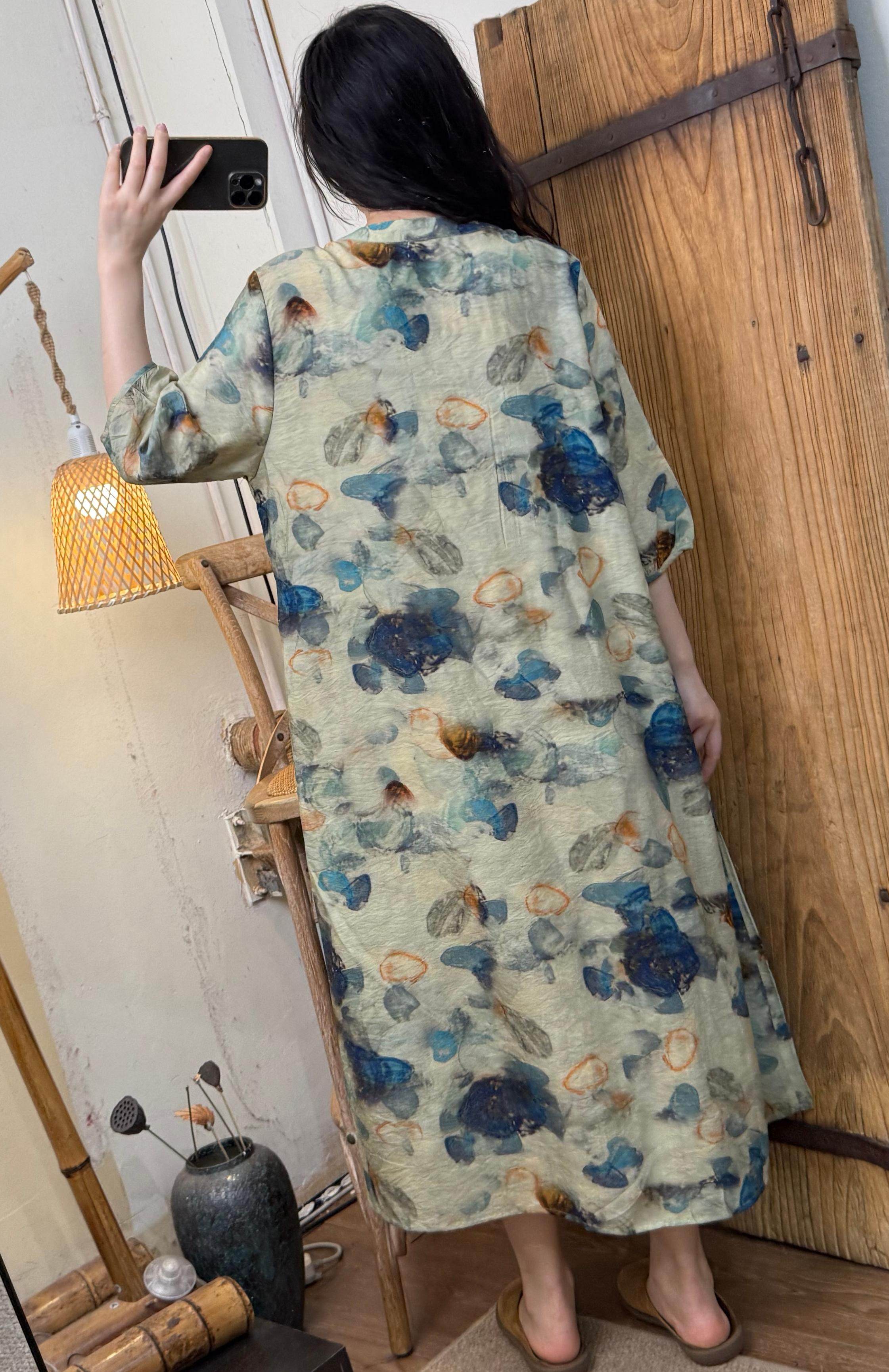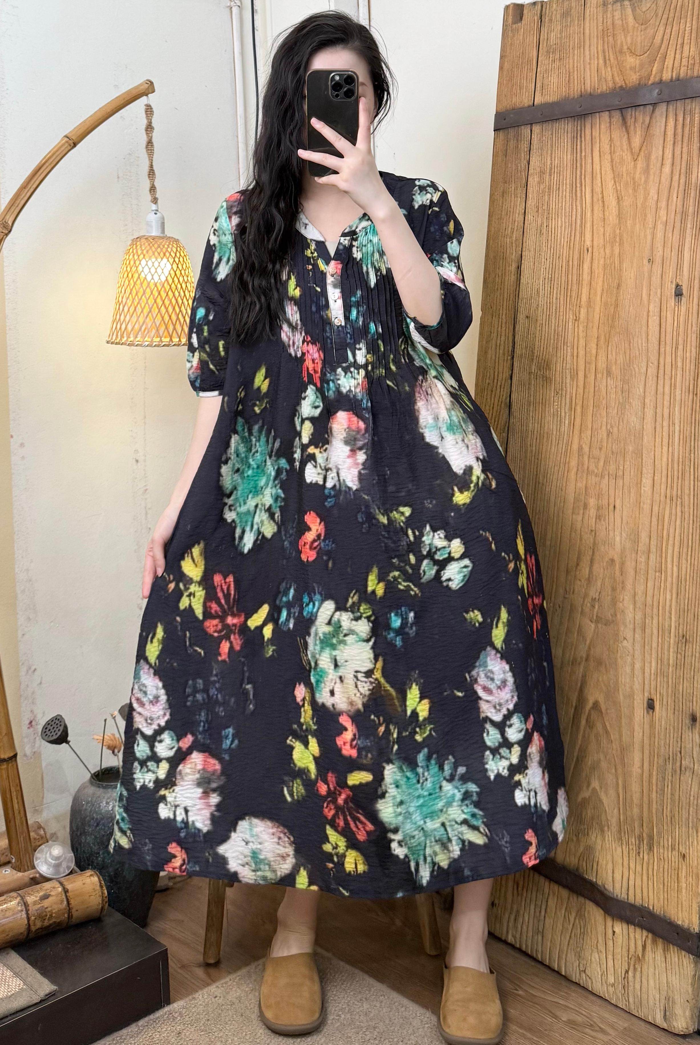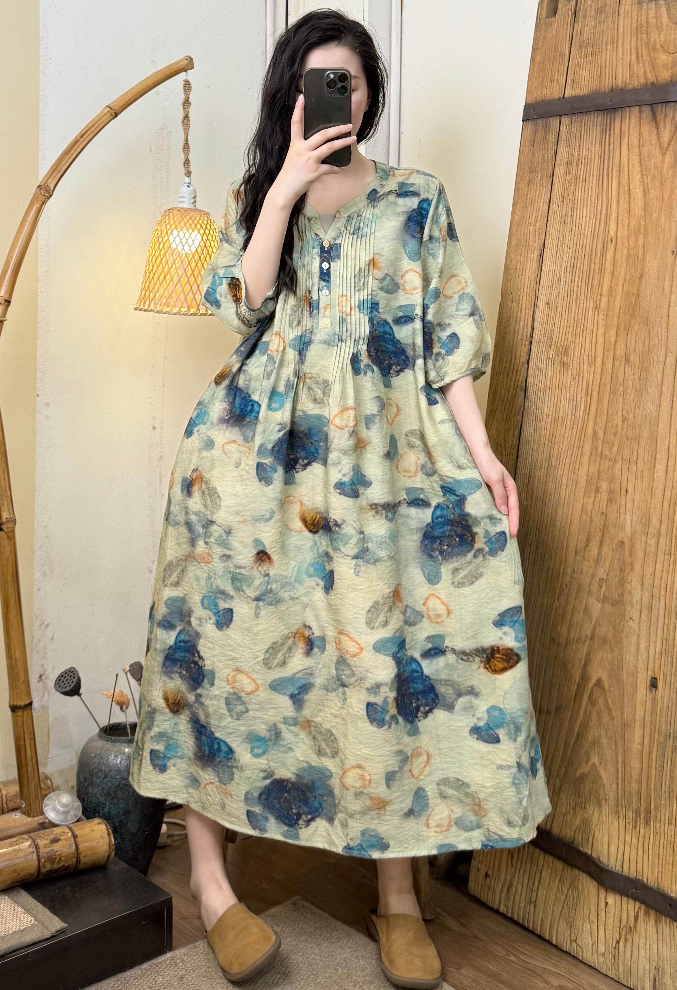 2025 여름 새로운 스타일 레트로 올 매치 디지털 인쇄 핀치 풀 오버 데프 싱글 레이어 원피스 탑스토어 가기