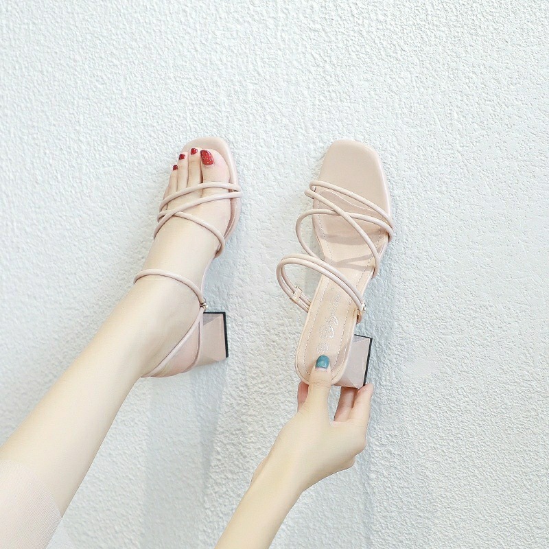 여성을위한 샌들 미드 힐 여름 2023 새로운 작은 사이즈 패션 여름 스트랩 부드러운 두꺼운 굽 투웨어 하이힐스토어 가기