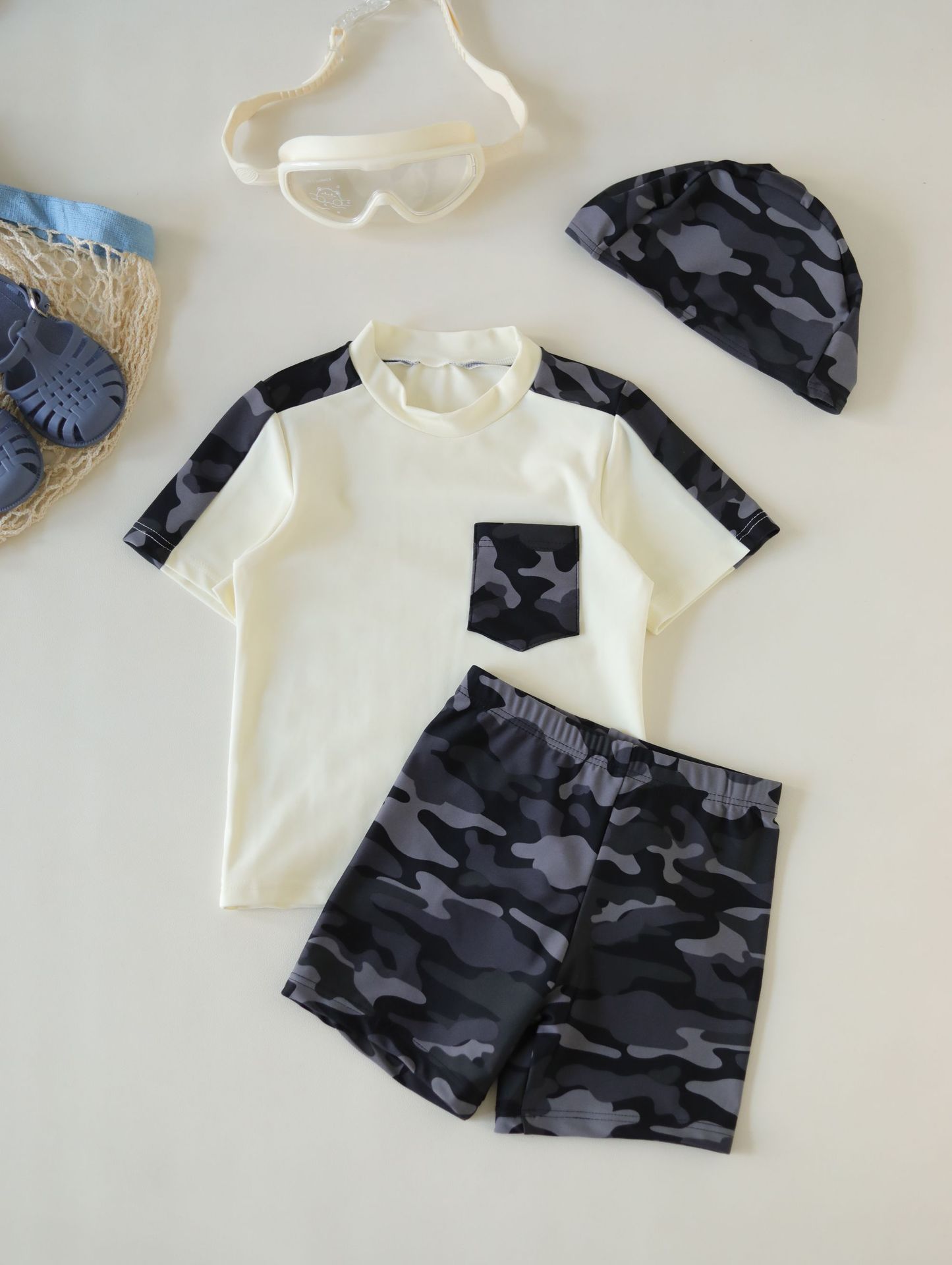 • 남아수영복세트 그레이베이지 [동색수영모 증정]