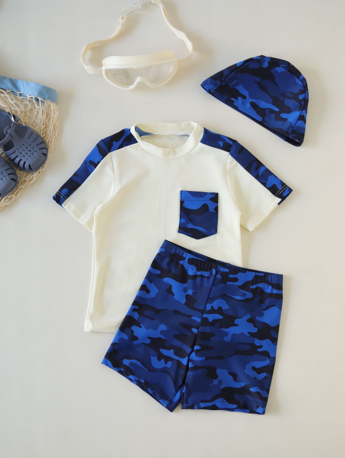 • 남아수영복세트 블루라이스컬러 [동색수영모 증정]