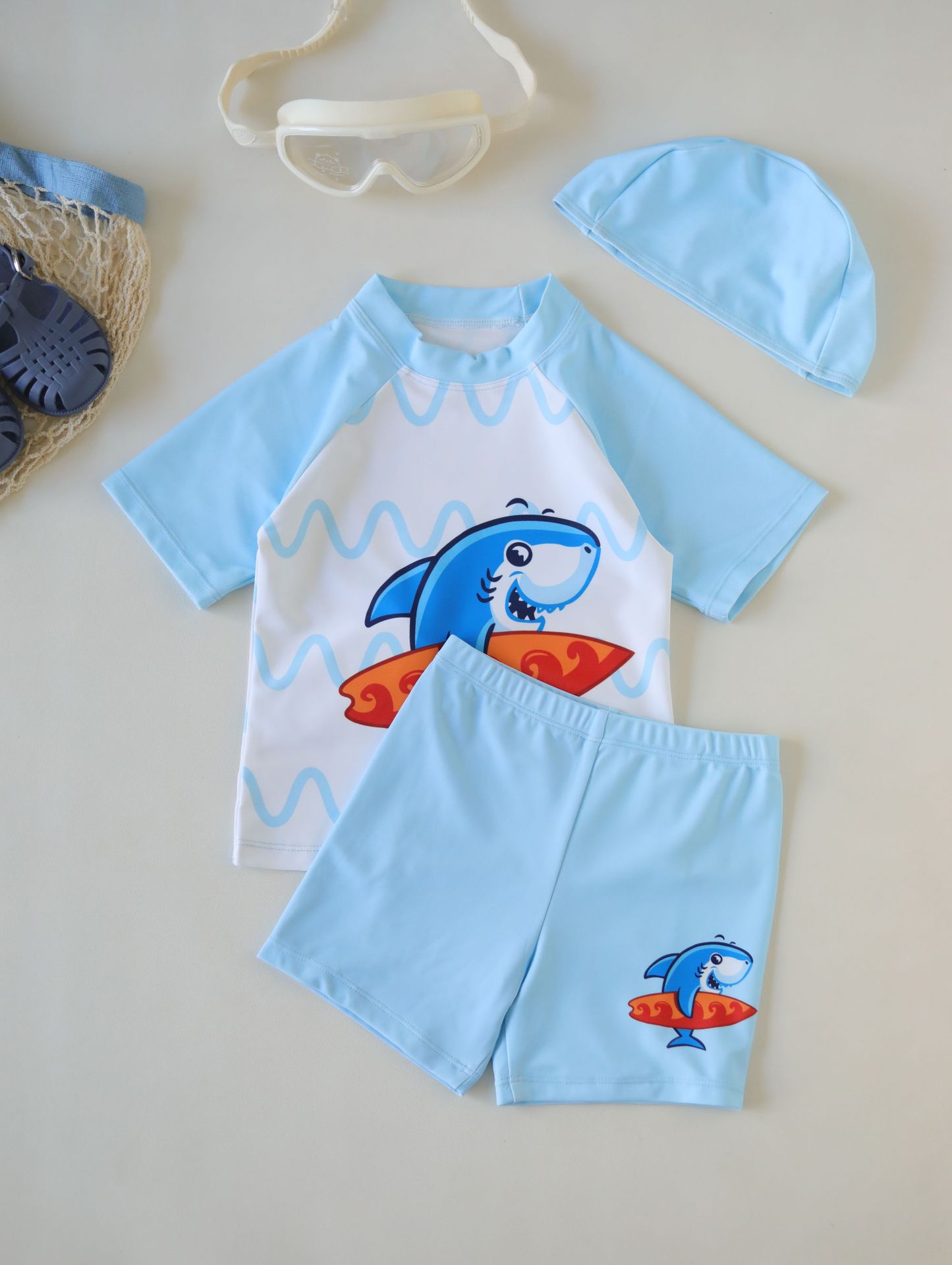 • 남아 수영복 세트 샤크 [동일 색상의 무료 수영모]