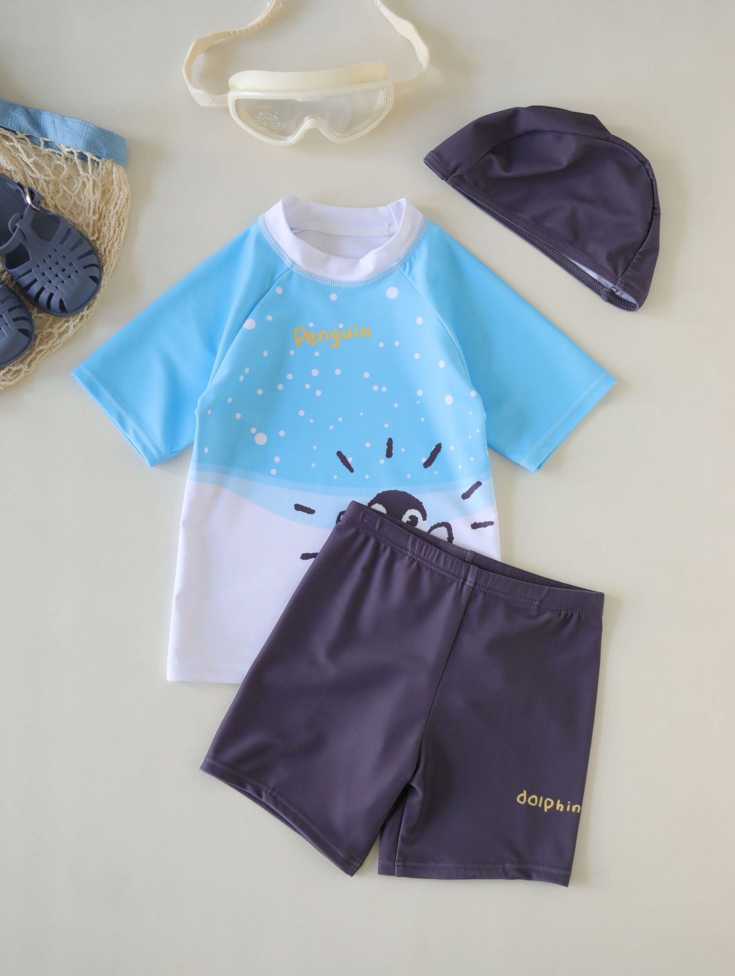 • 남아 수영복 세트 리틀 펭귄 [동일 색상의 무료 수영모]