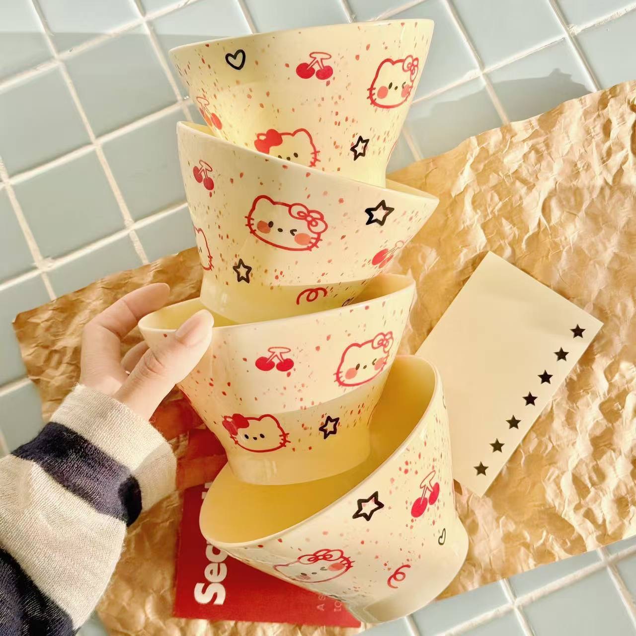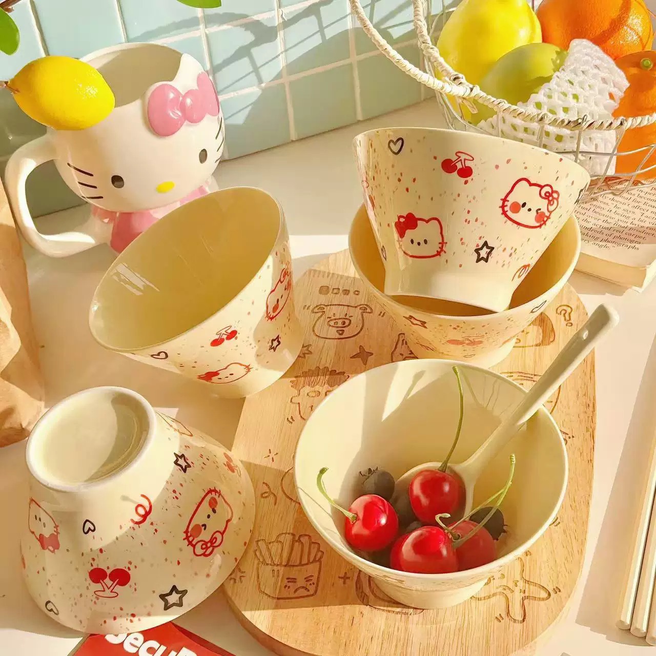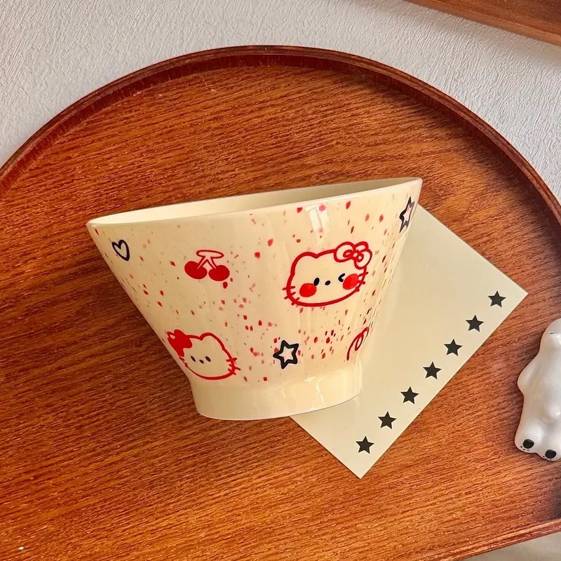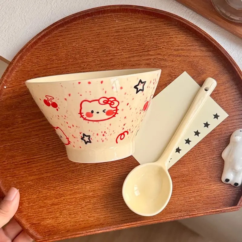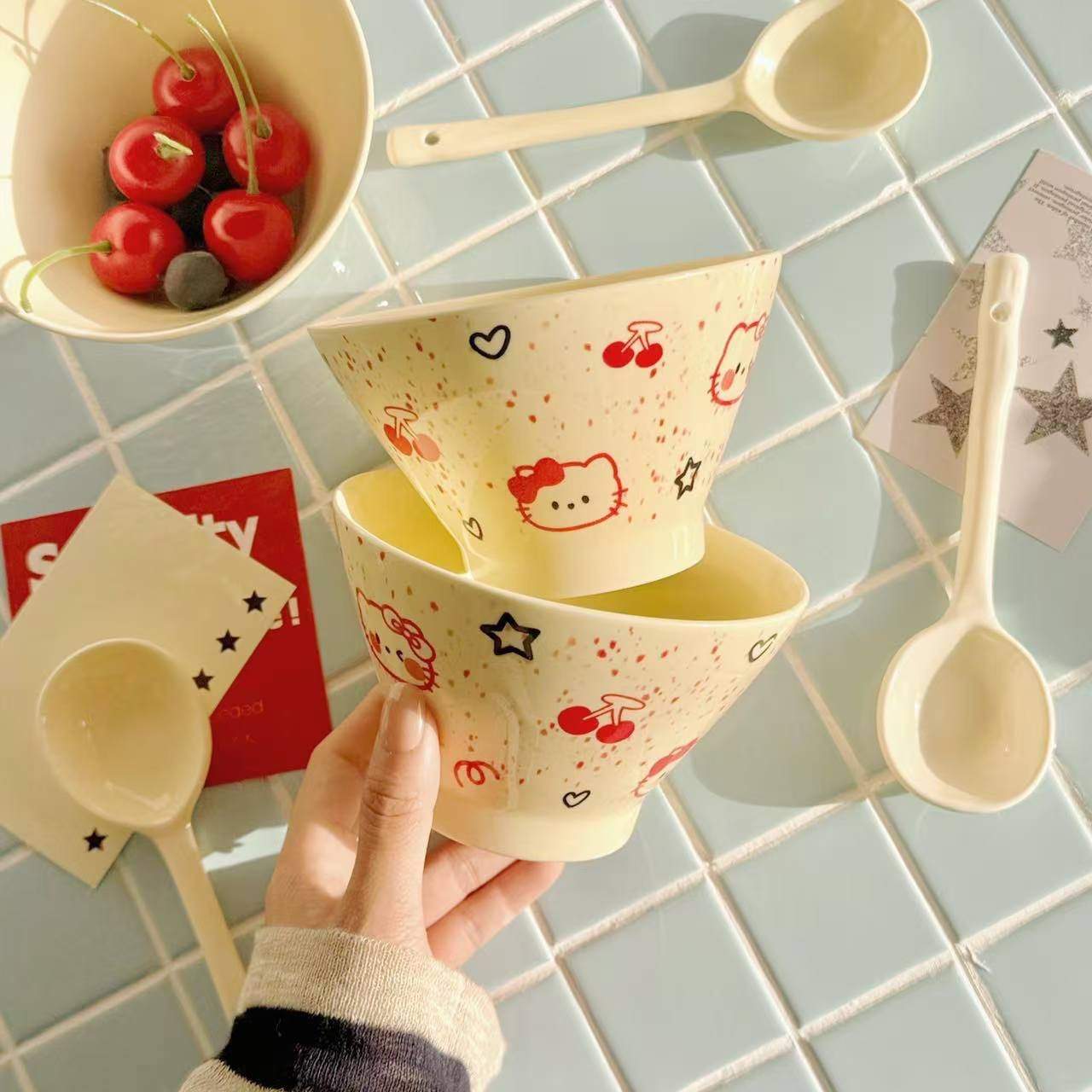 귀여운 크림 그릇 만화 버전 세라믹 밥 그릇 소녀 심장 손으로 그린 큰 용량 먹는 그릇 숟가락 도매
