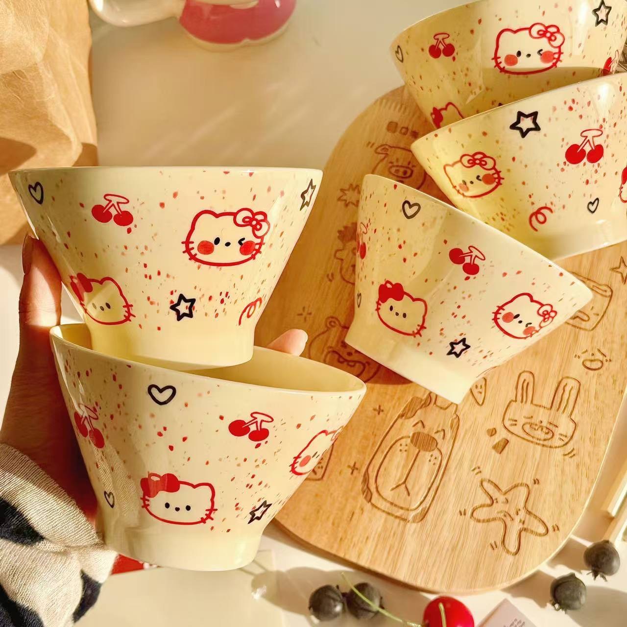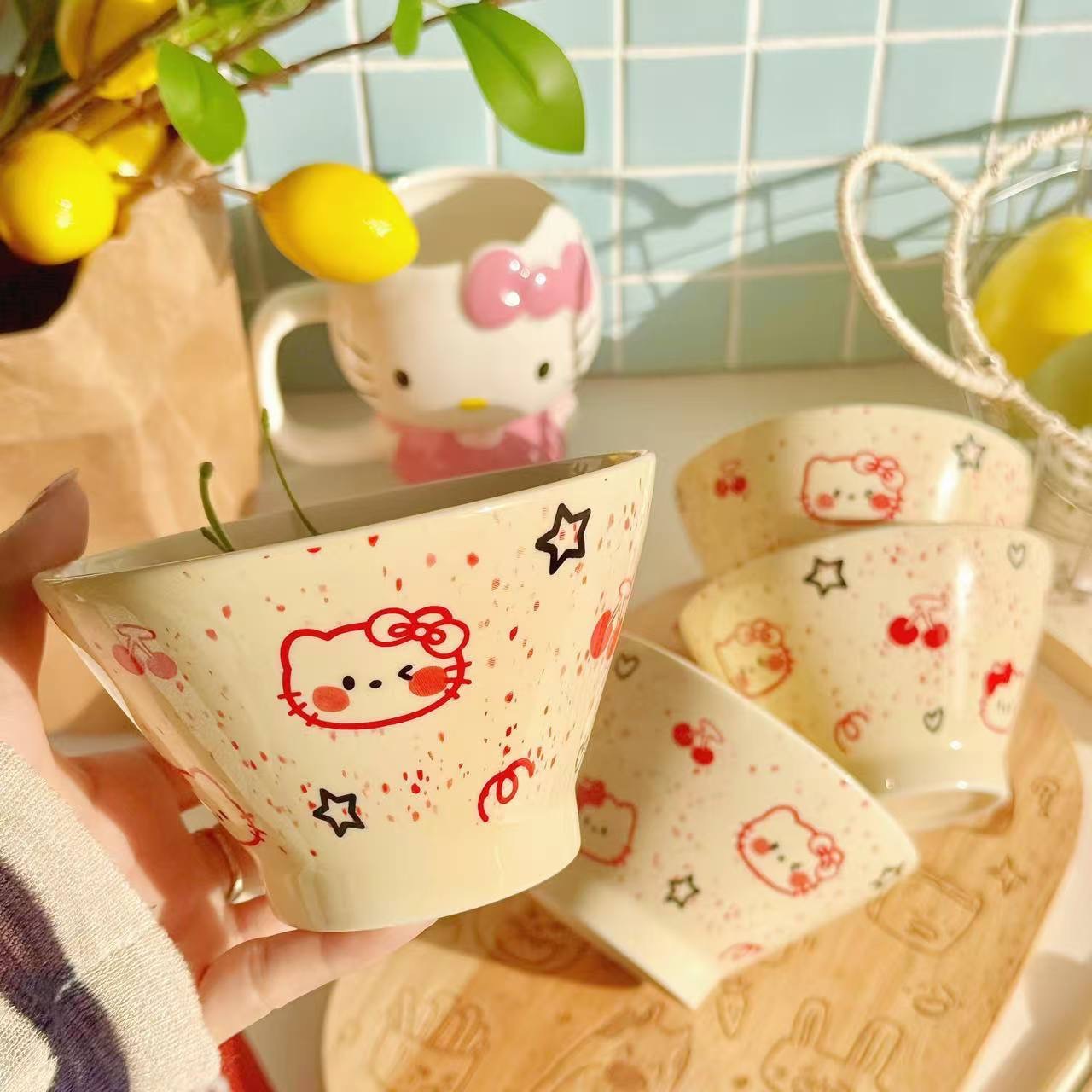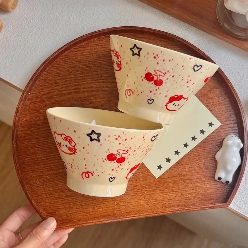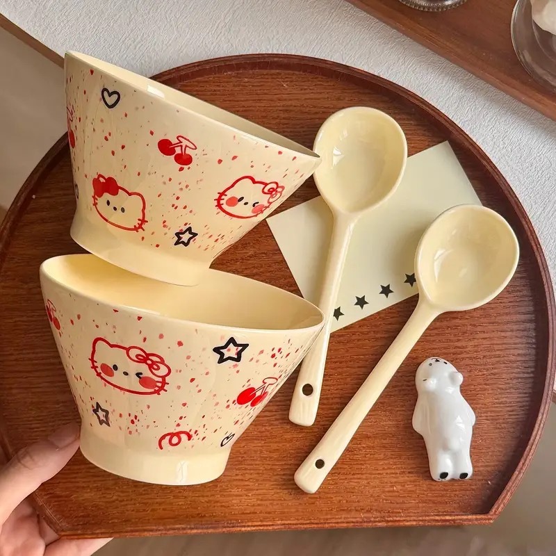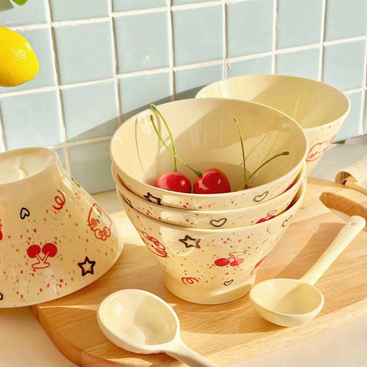 • [4종 세트] 체리 키튼 그릇 2개 + 세라믹 스푼 2개