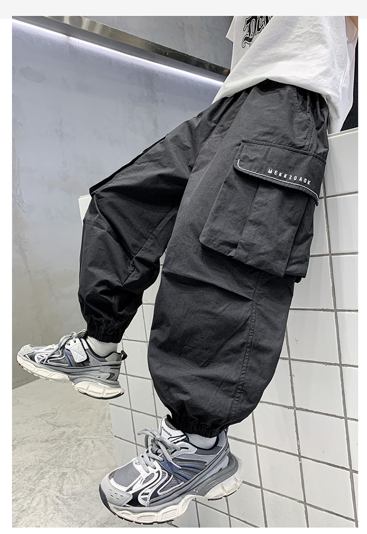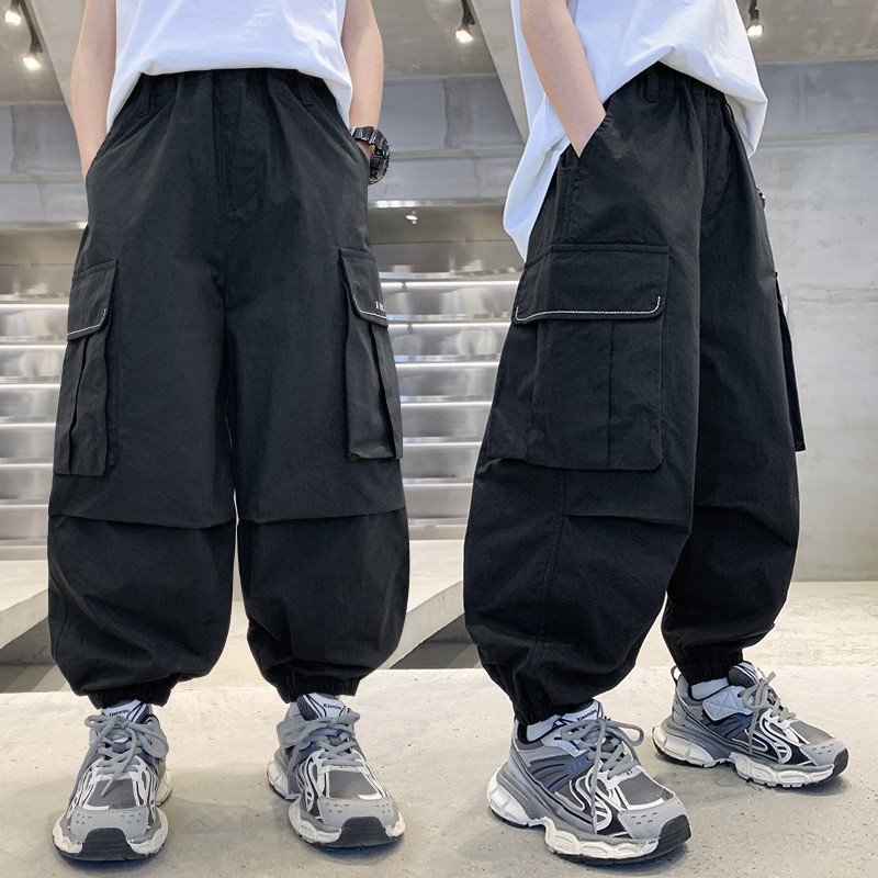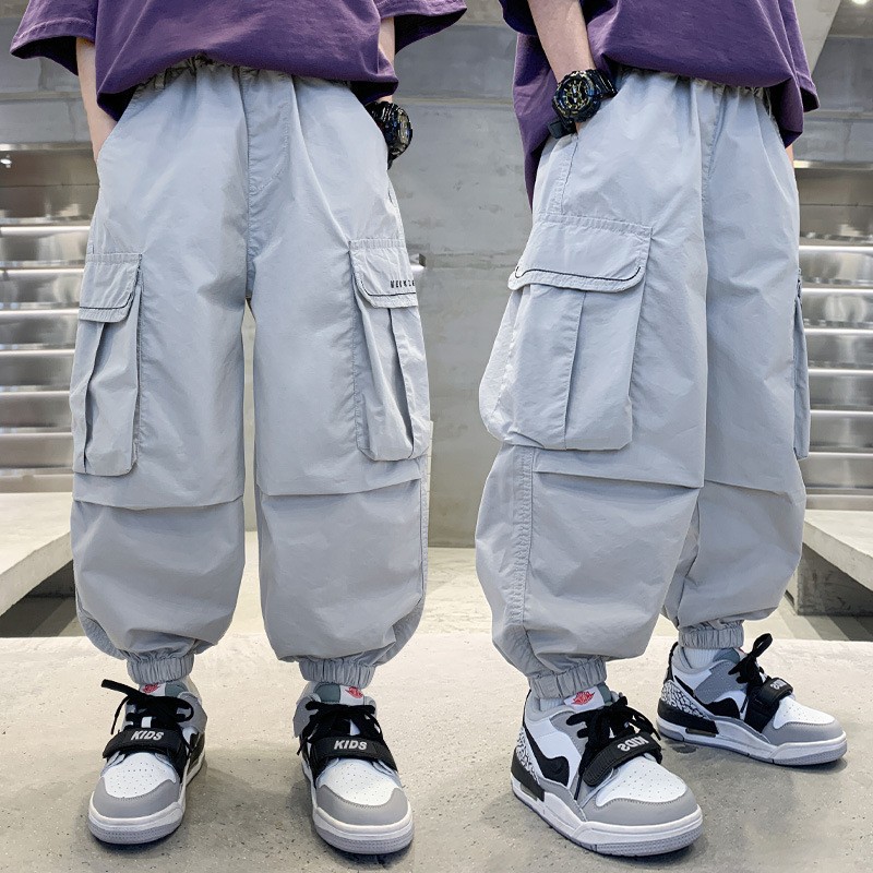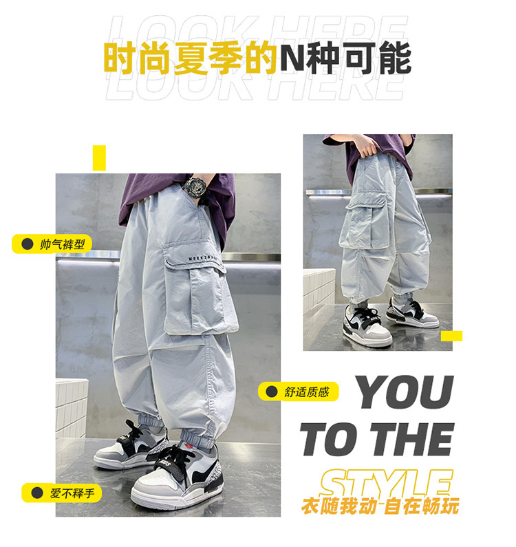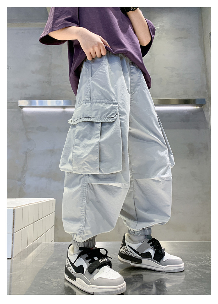소년 작업복 여름 느슨한 바지 2025 새로운 중대형 소년 여름 바지 어린이 바지
