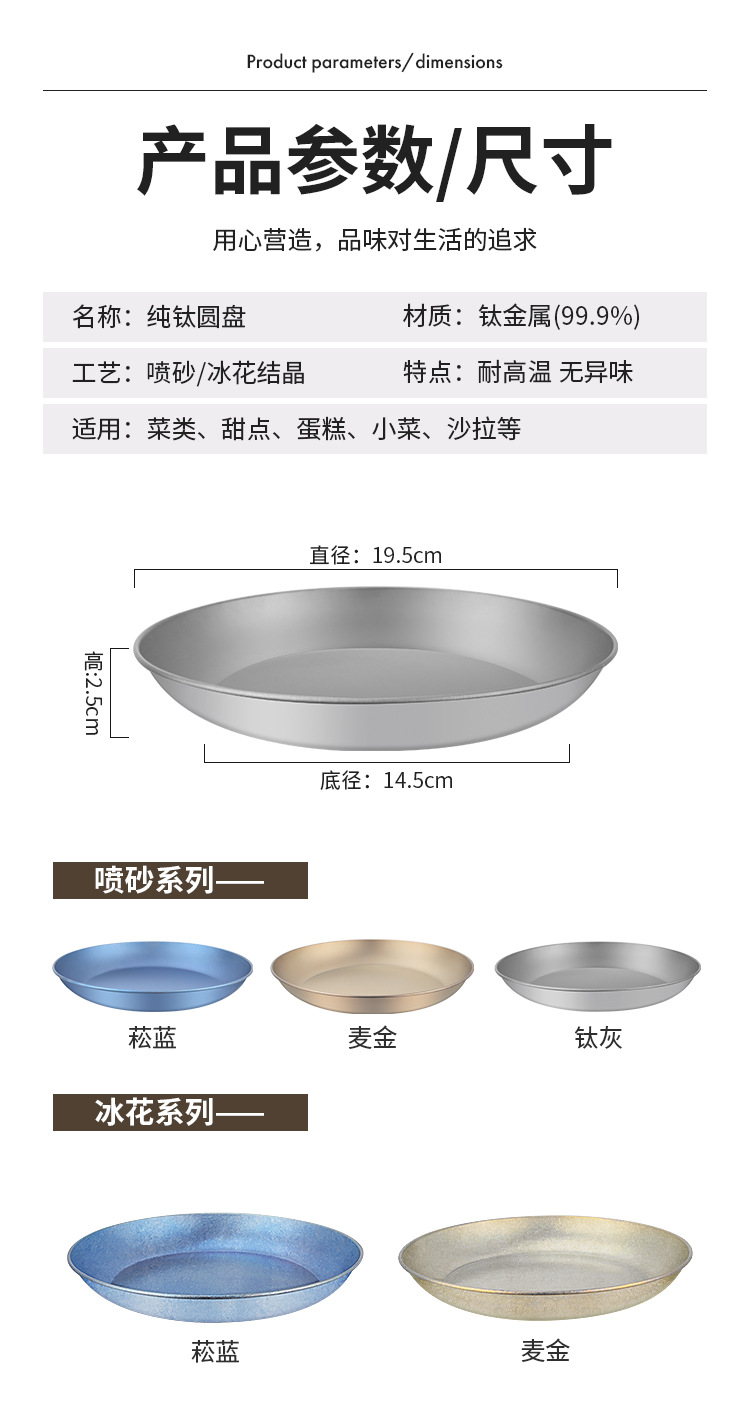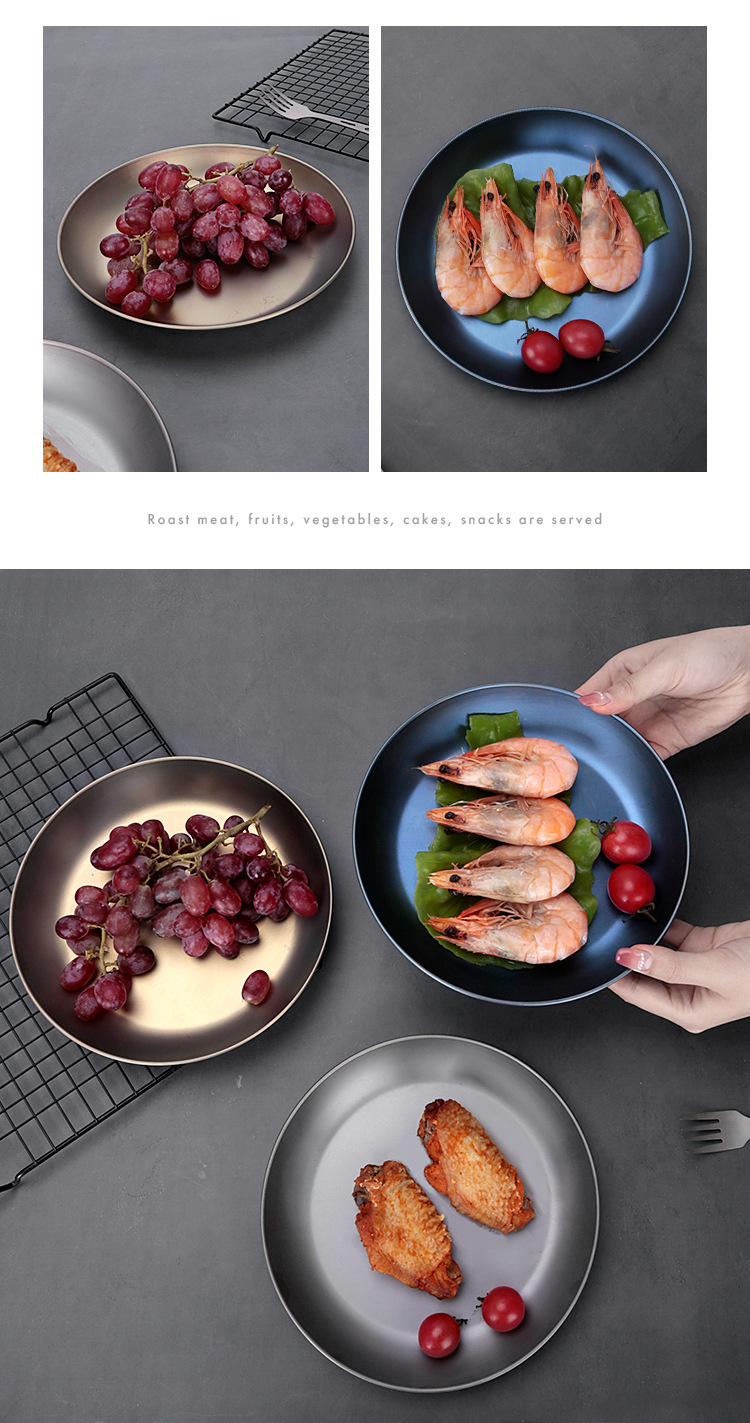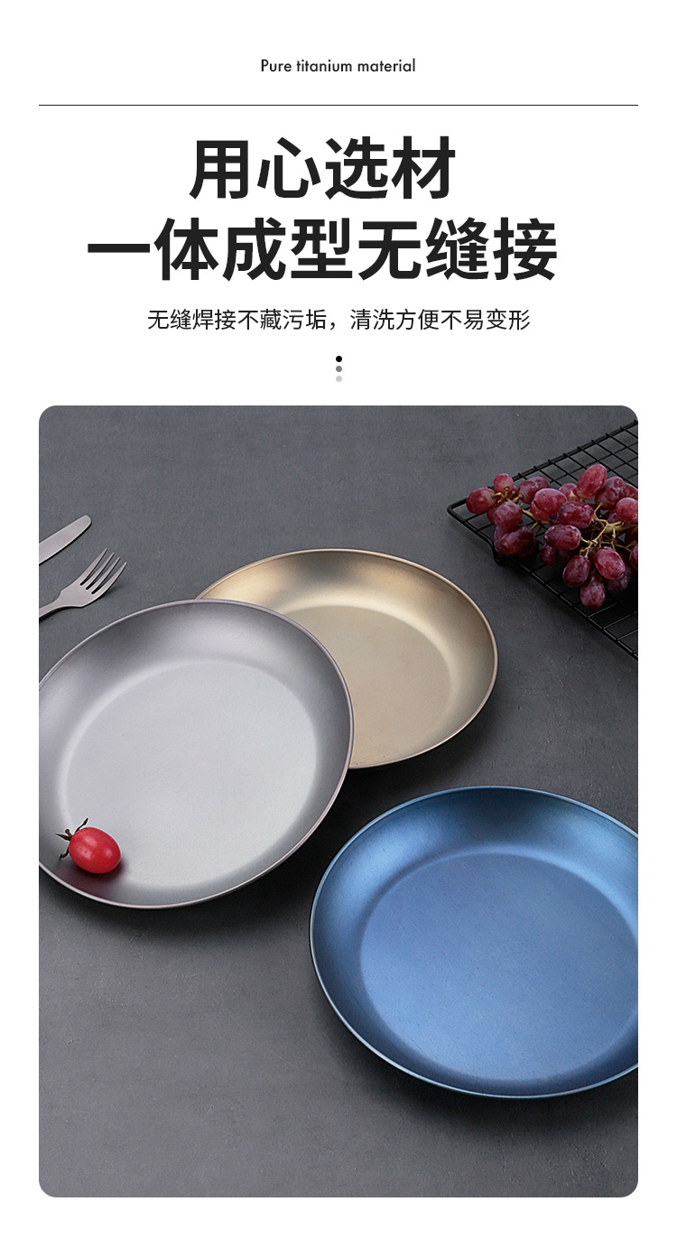 맞춤형 야외 순수 티타늄 디너 접시, 가벼운 럭셔리 스타일 과일 원형 트레이, 가정용 고급스러운 일본 순수 티타늄 접시스토어 가기