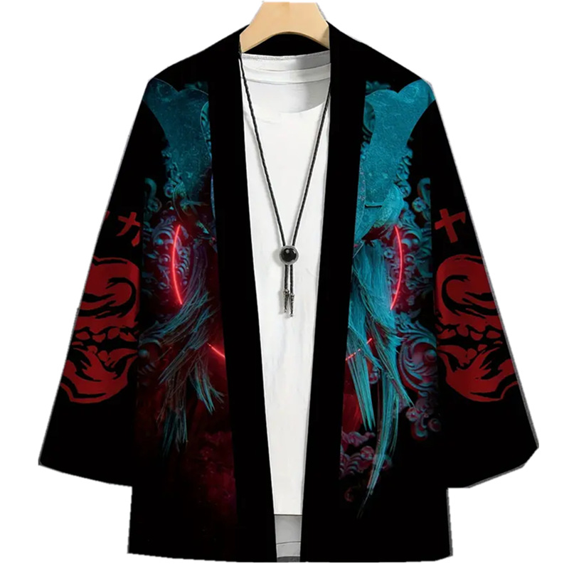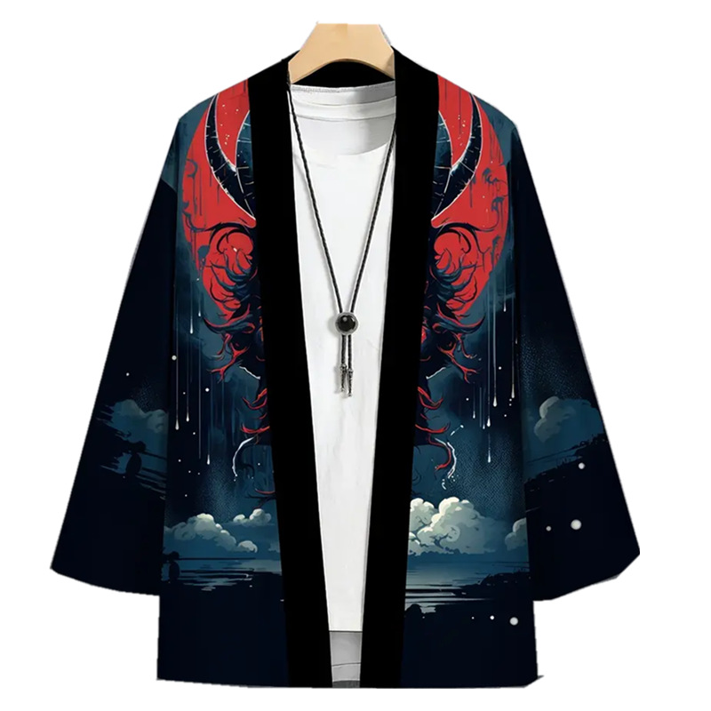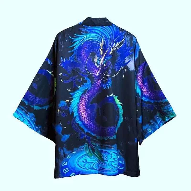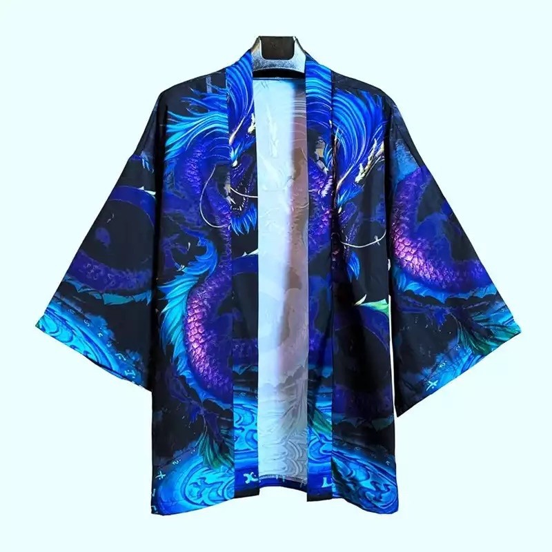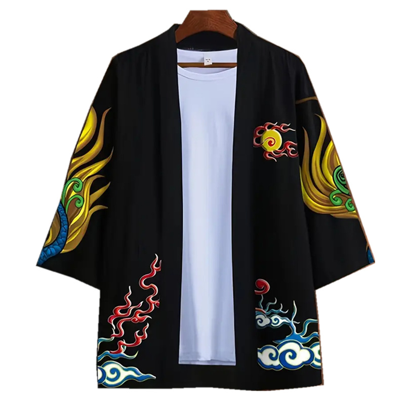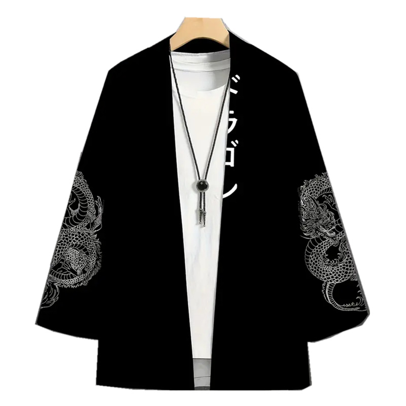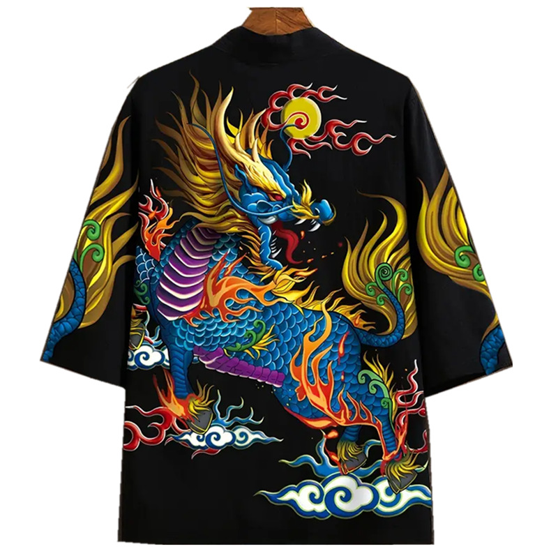 국경 간 2025 새로운 디지털 인쇄 중국 스타일 드래곤 일본식 기모노 망토 코트 가운 잠옷 카디건 여성용스토어 가기