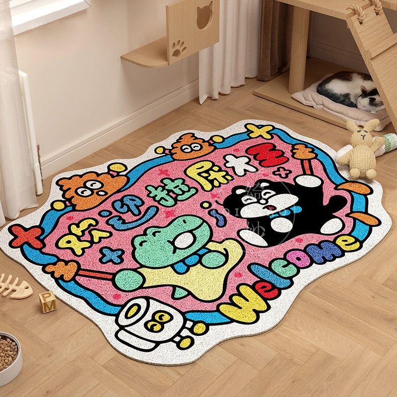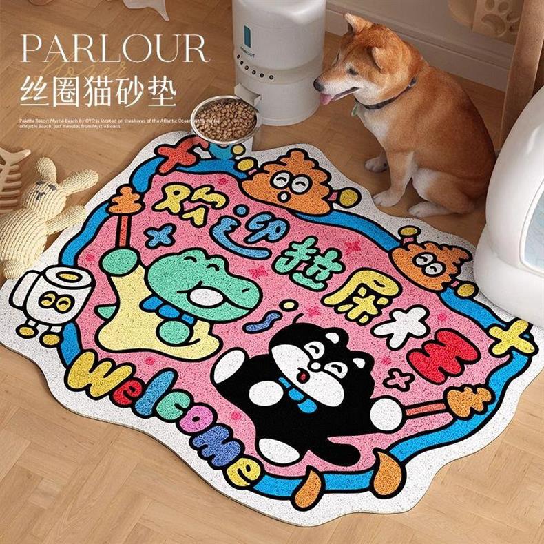 실크링 바닥매트, 환영 똥왕 카펫, 휴대방지, 물튀김방지 고양이 모래매트, 고양이와 강아지용 매트, 애완동물용스토어 가기