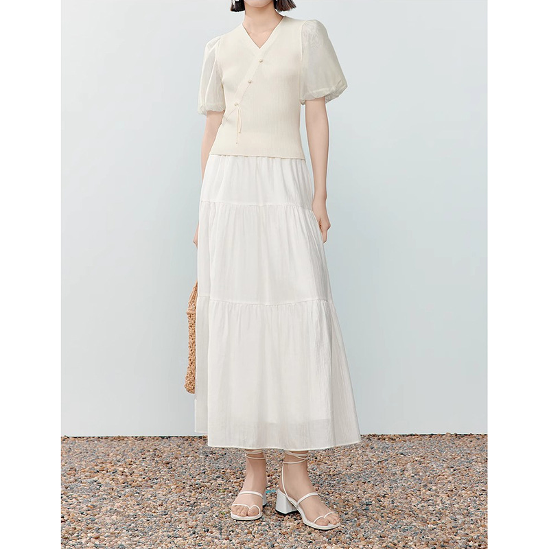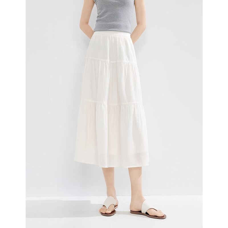 우아한 기질 올 매치 슬리밍 하이 허리 쉬폰 케이크 긴 오버 스커트 여자 2025 년 여름 새로운 1F5941891