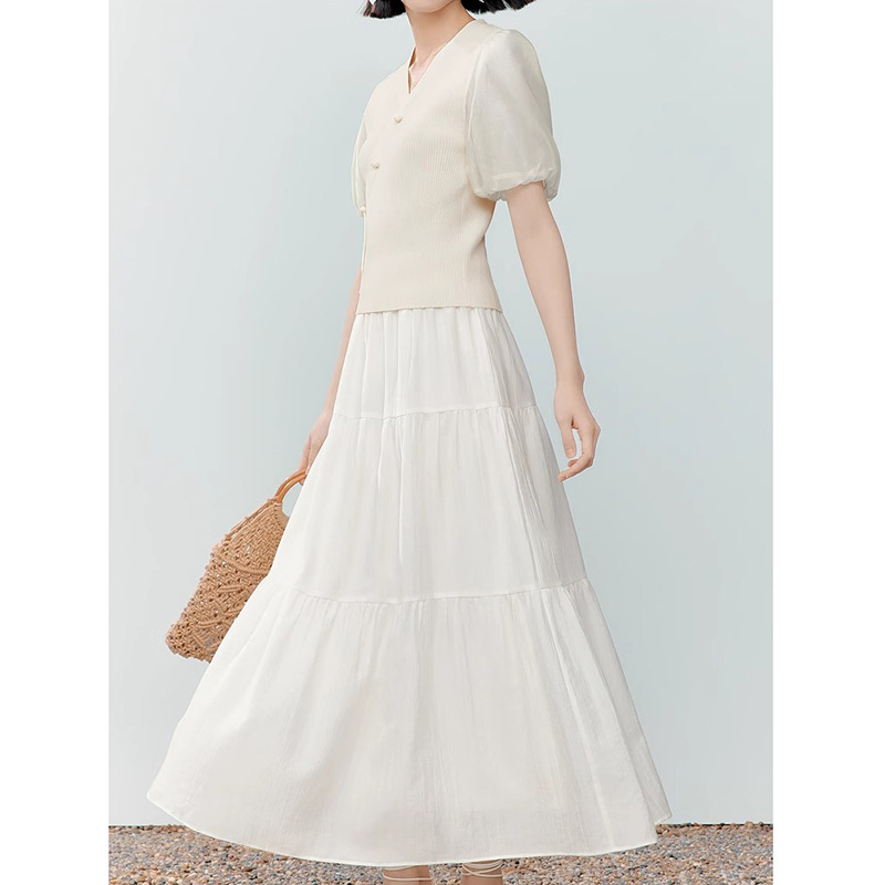 우아한 기질 올 매치 슬리밍 하이 허리 쉬폰 케이크 긴 오버 스커트 여자 2025 년 여름 새로운 1F5941891스토어 가기