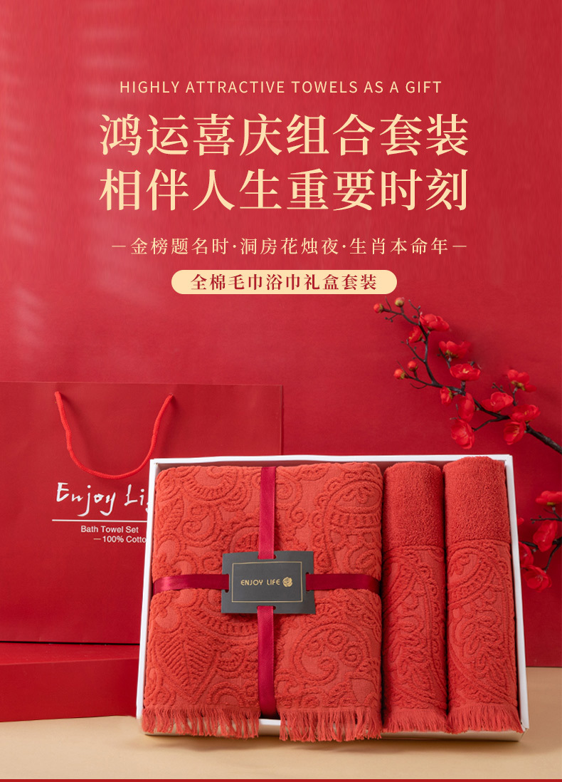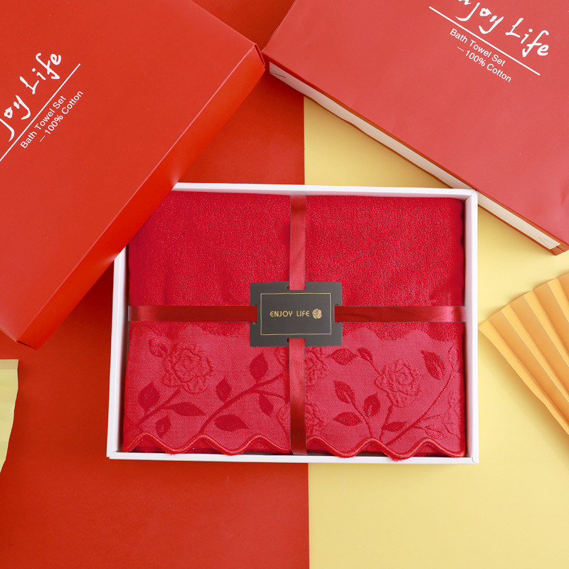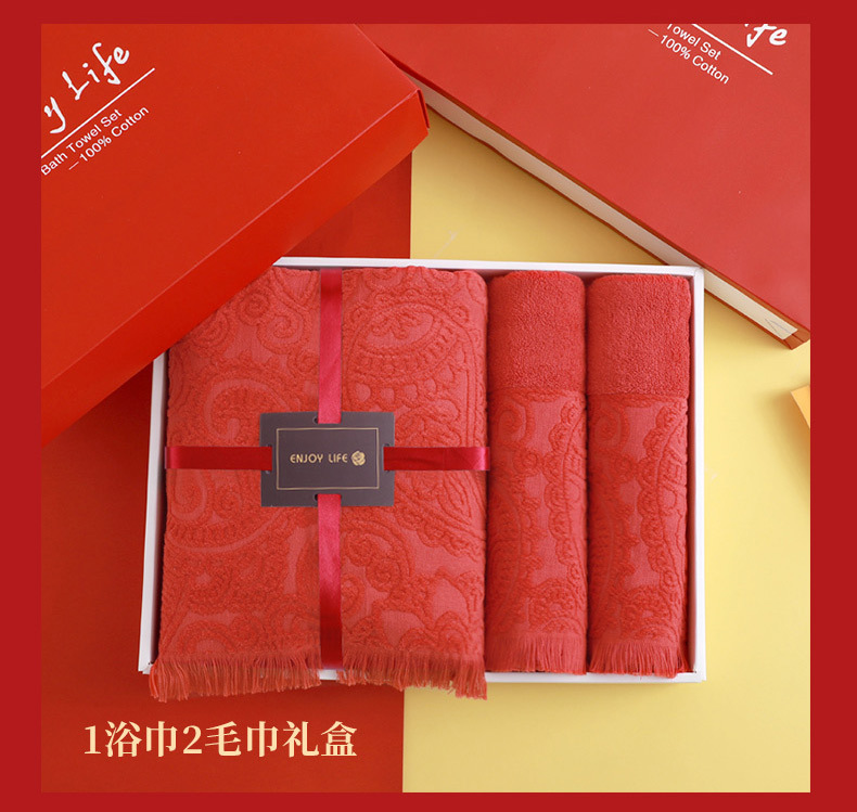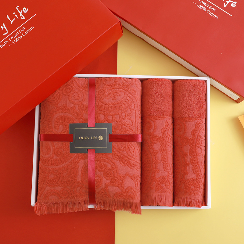 순면 빨간 수건 목욕 타월 3 조각 세트 선물 상자 회사 활동 복지 보름달 결혼식 생일 선물