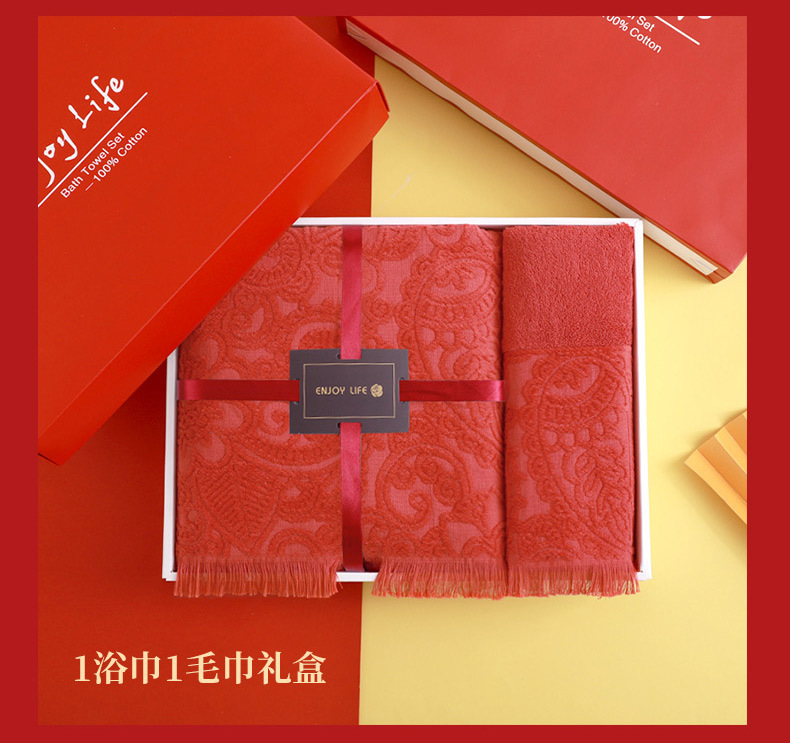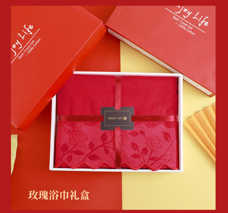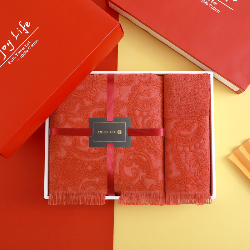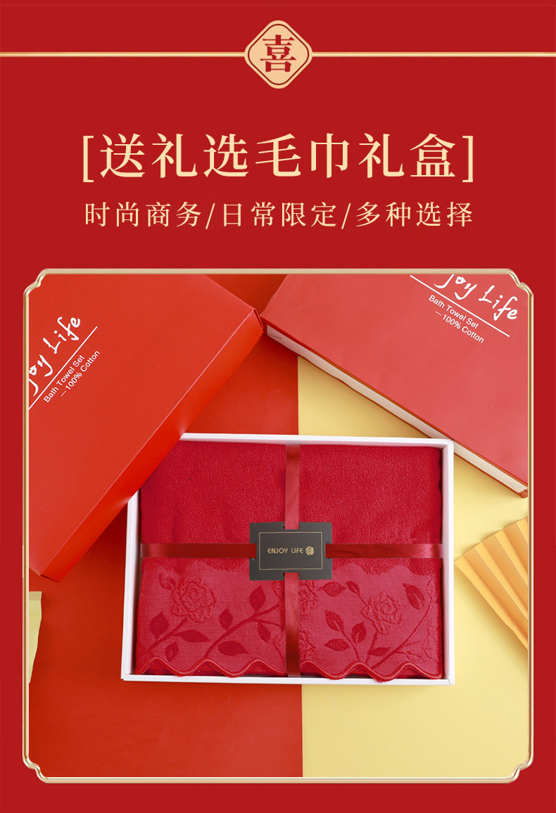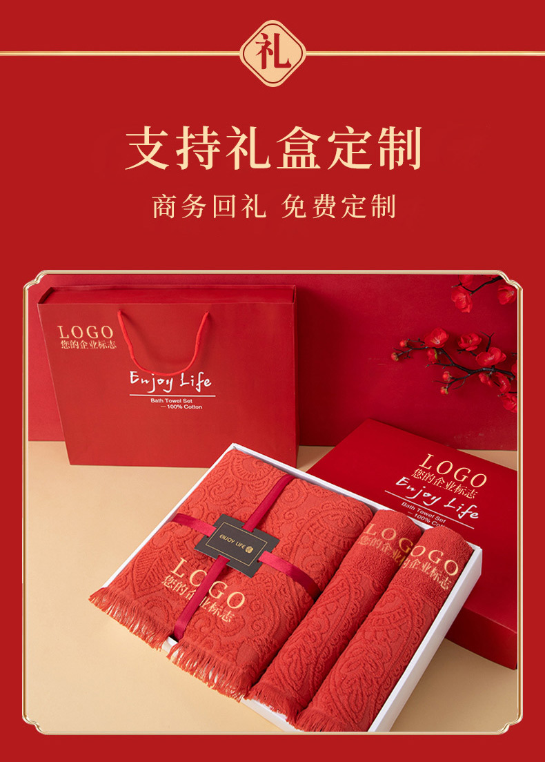 순면 빨간 수건 목욕 타월 3 조각 세트 선물 상자 회사 활동 복지 보름달 결혼식 생일 선물