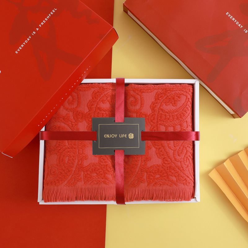 순면 빨간 수건 목욕 타월 3 조각 세트 선물 상자 회사 활동 복지 보름달 결혼식 생일 선물스토어 가기