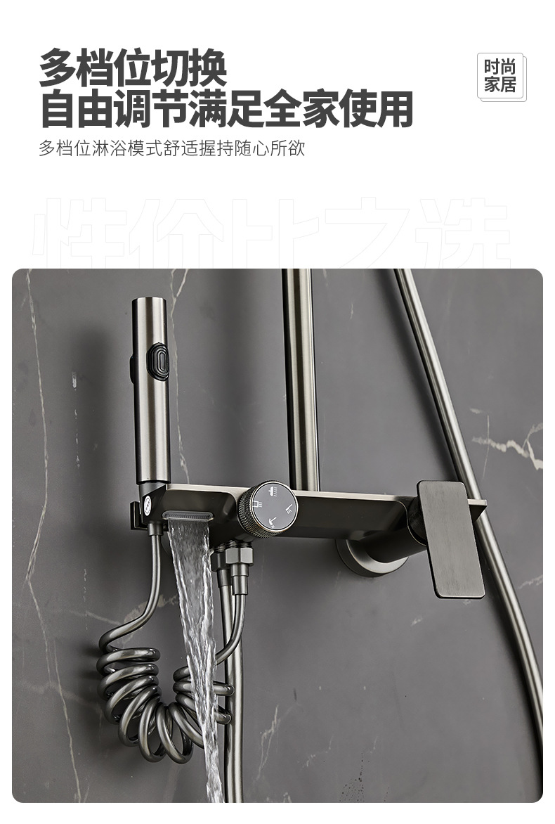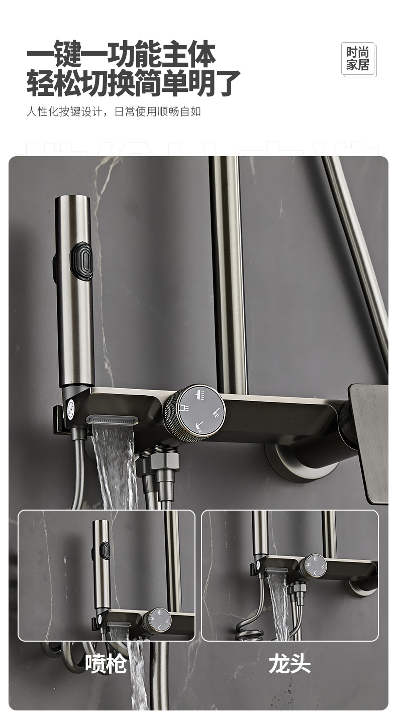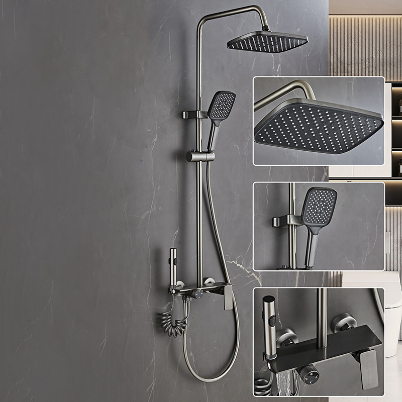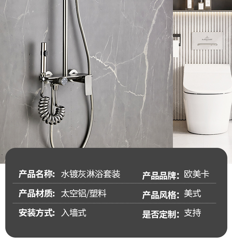 온도 조절식 가정용 샤워 세트 미국식 수성 회색 대형 노즐 레인 샤워 욕실 화장실 샤워기
