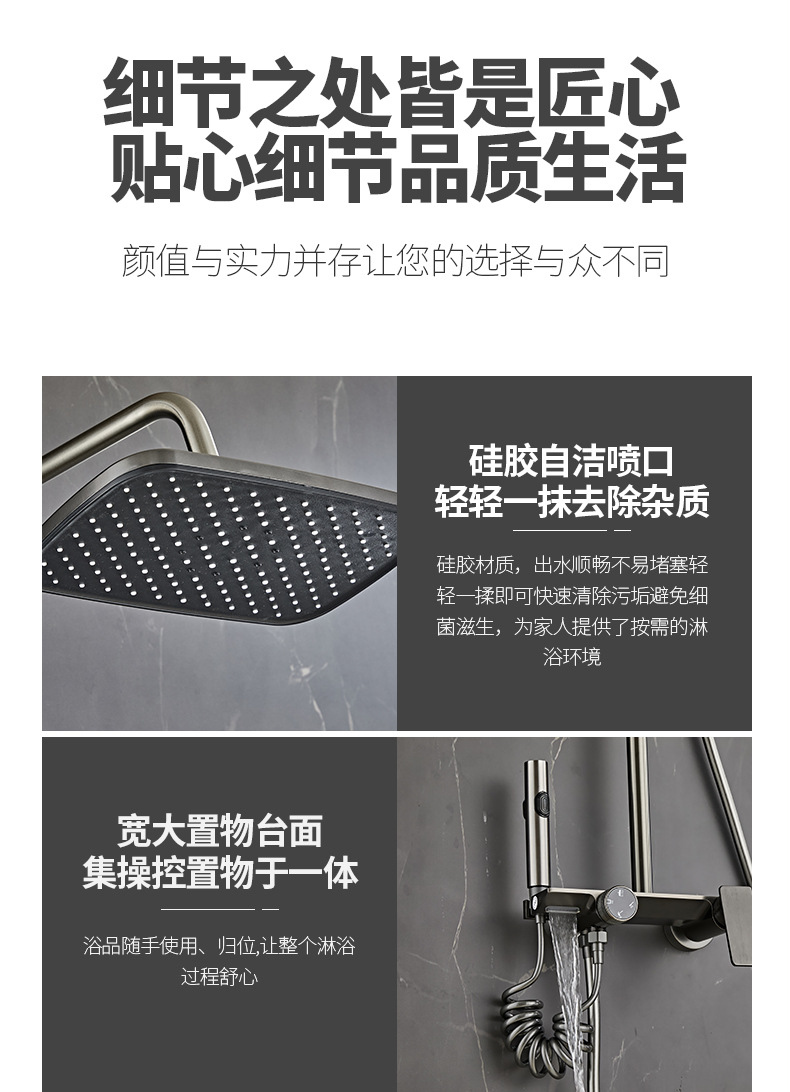온도 조절식 가정용 샤워 세트 미국식 수성 회색 대형 노즐 레인 샤워 욕실 화장실 샤워기스토어 가기