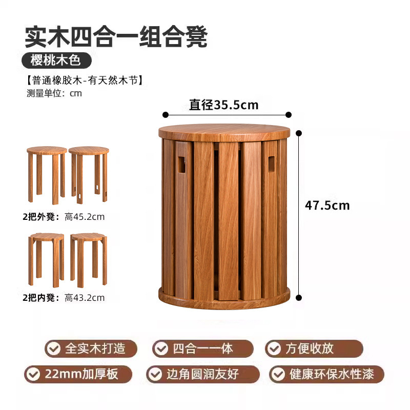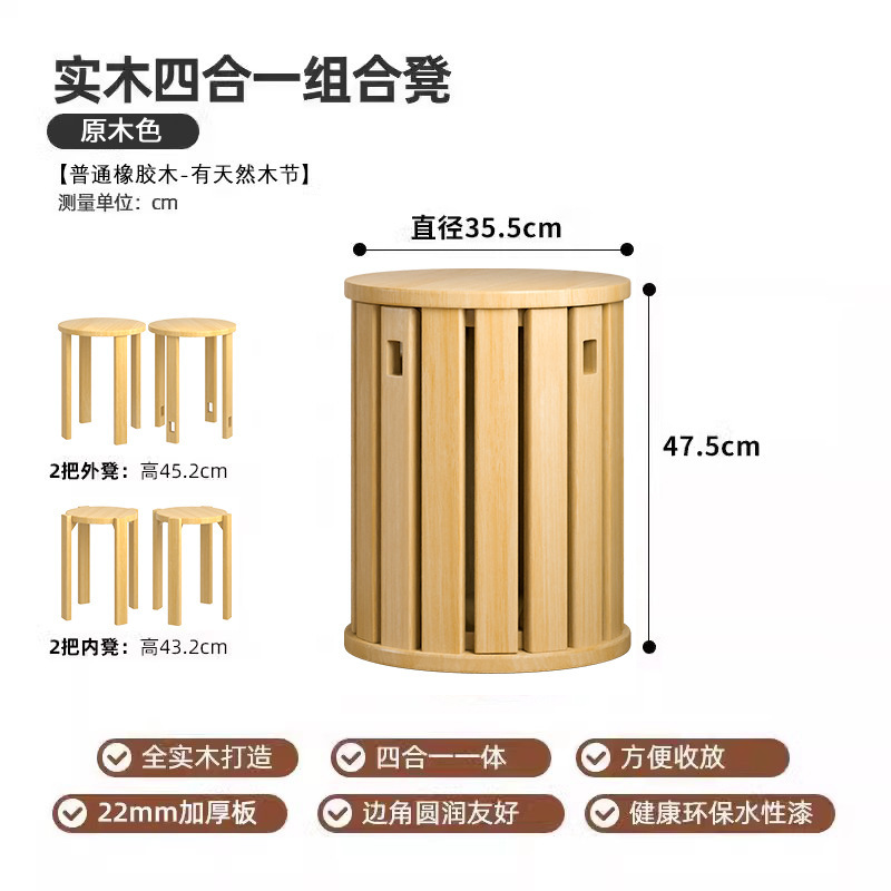 • 수입 AAA 고무나무 - 통나무 색상 - [스툴 4개 쌓을 수 있음]