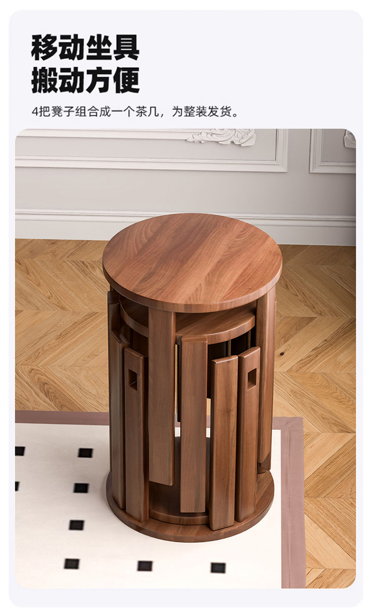 쌓을 수있는 의자 현대 식당 테이블 의자 로그 새로운 중국 스타일 솔리드 우드 라운드 의자 커피 테이블 가구