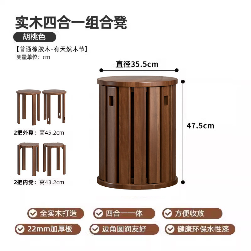 • 수입 AAA 고무나무 - 호두색상 - [스툴 4개 쌓기 가능]