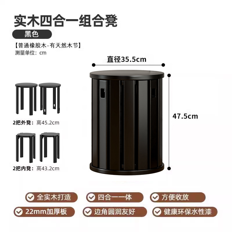• 수입 AAA 고무나무 - 블랙 - [스툴 4개 쌓기 가능]