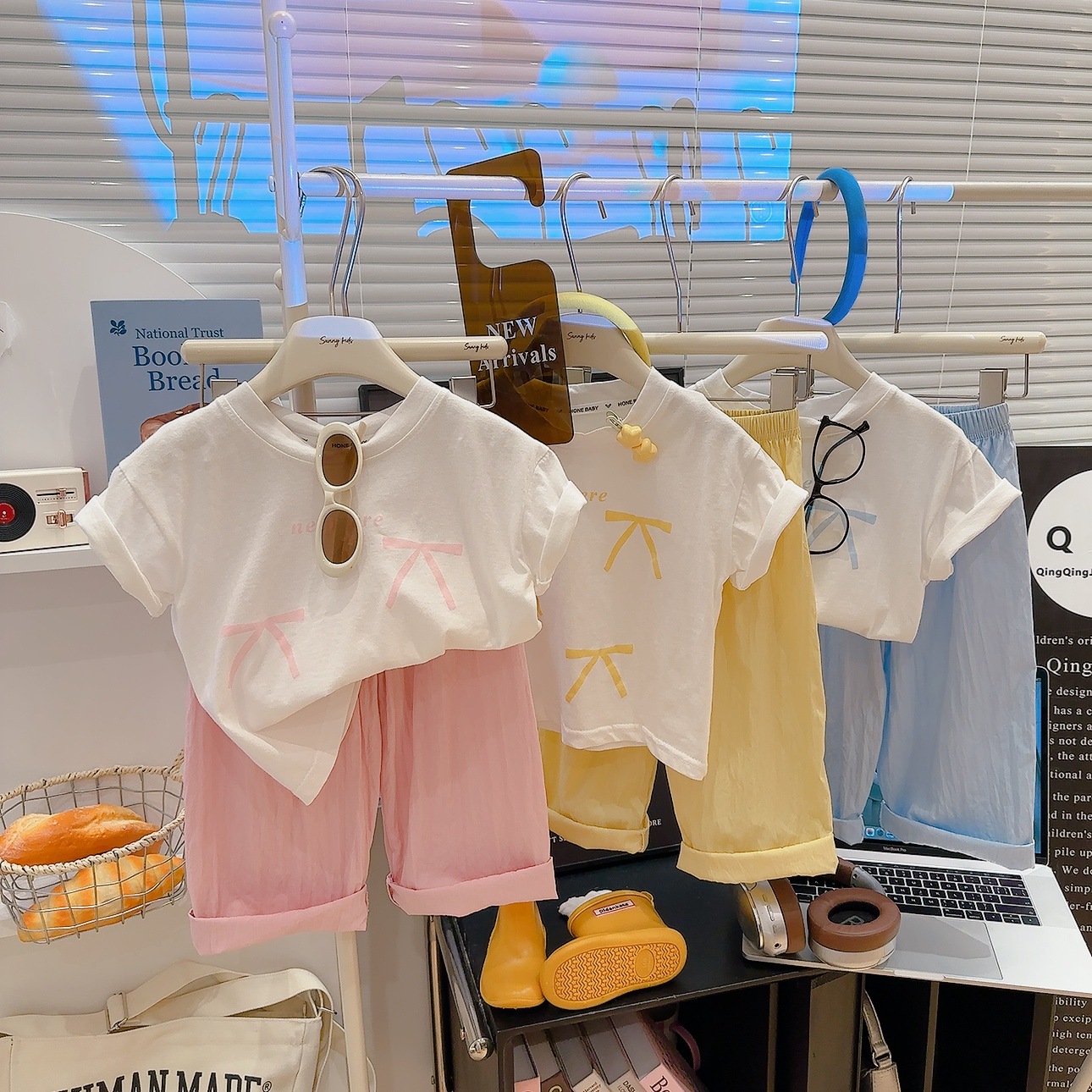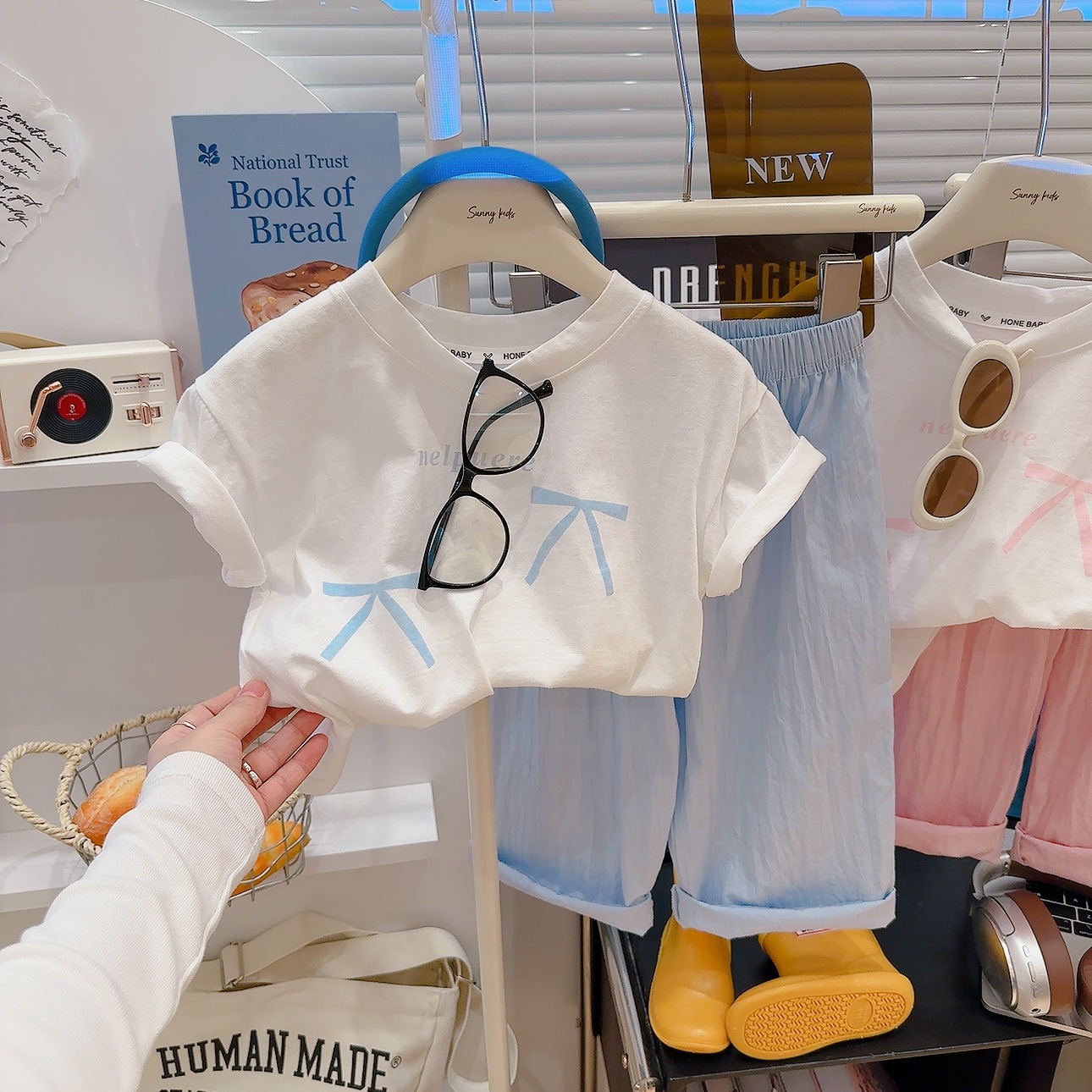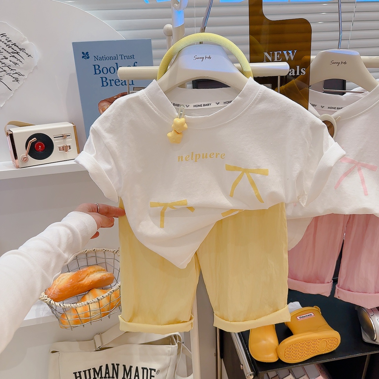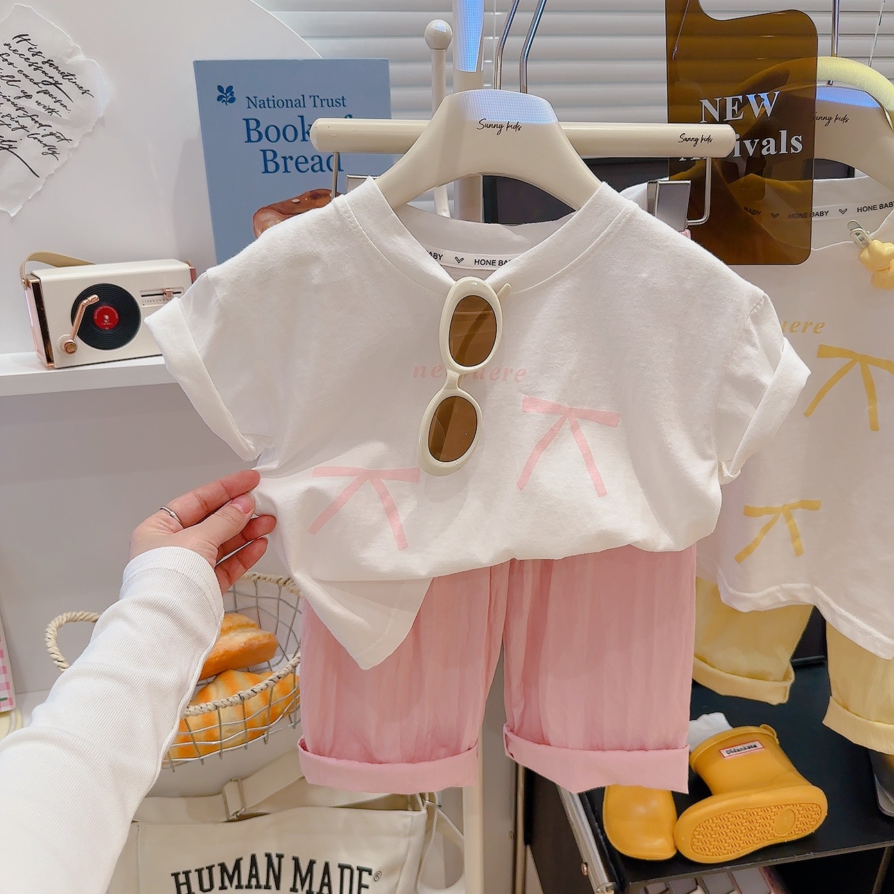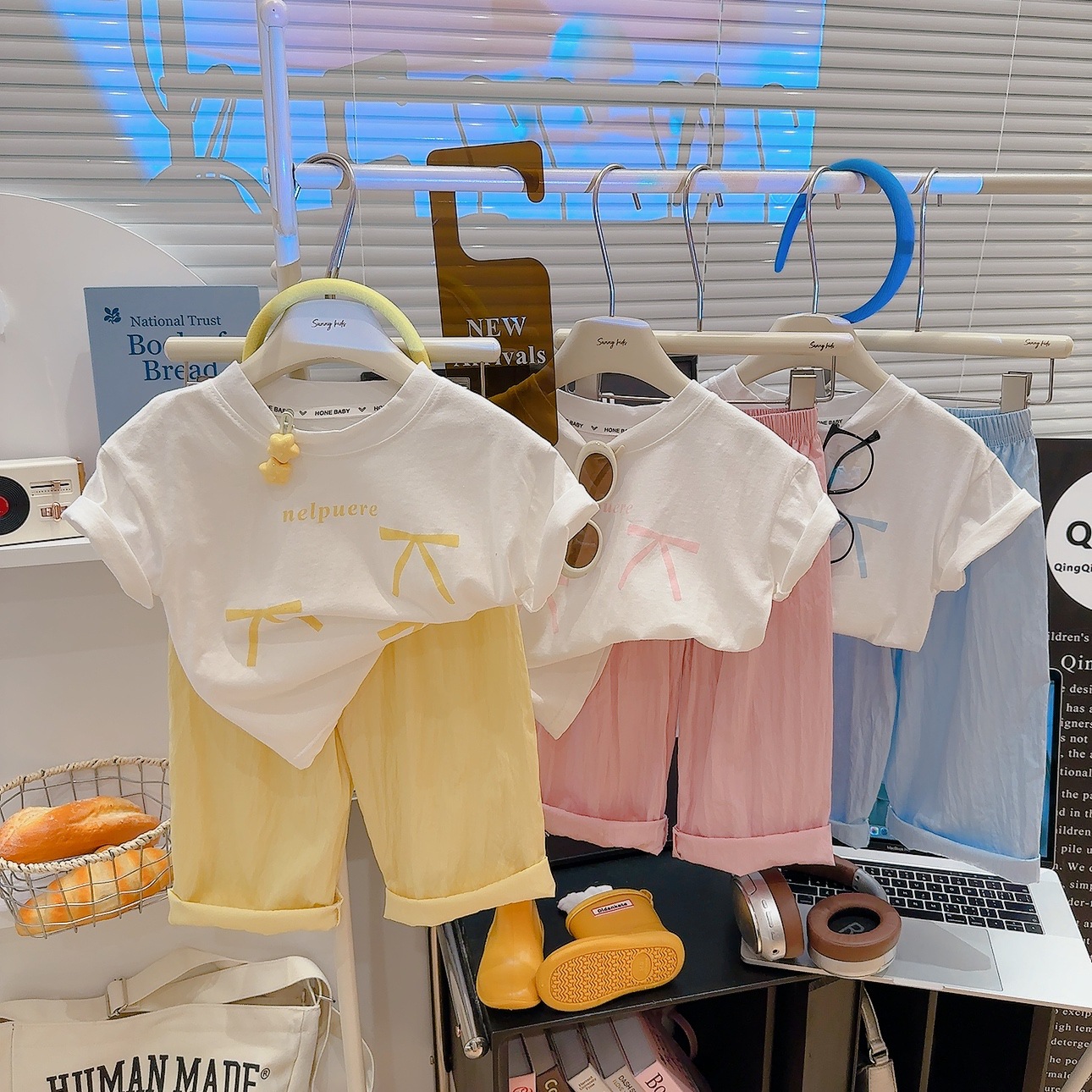 여아 반팔 바지 여름 유럽 스타일 모기 방지 바지 베이비 야마모토 바지 모리 스타일 패션 투피스 세트 클래스 A 안전스토어 가기