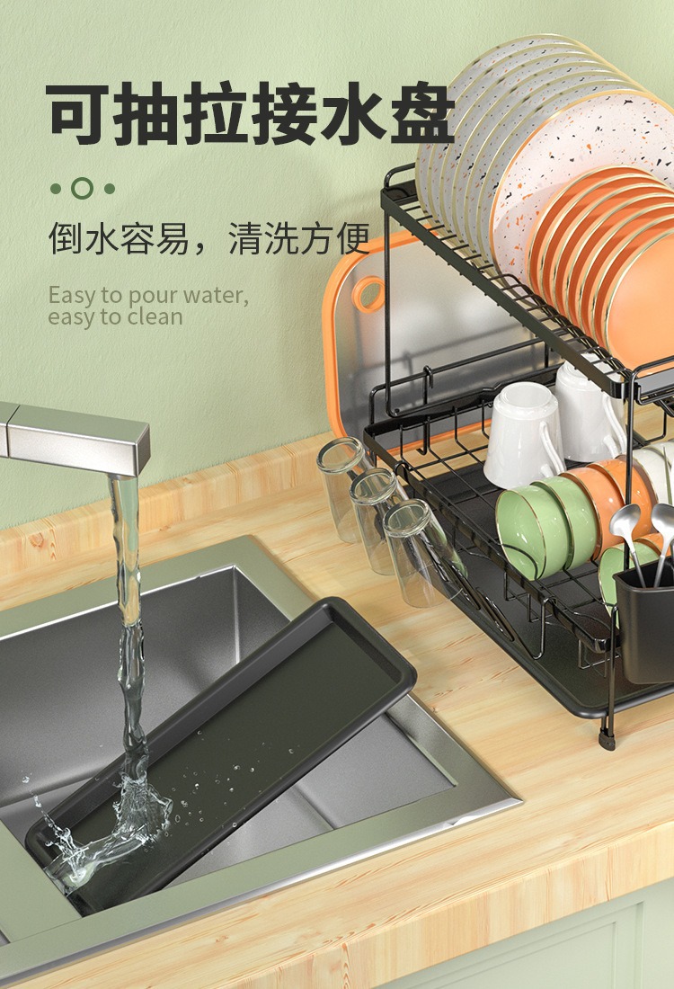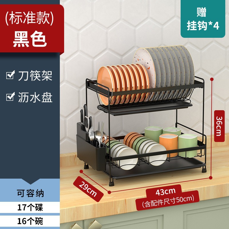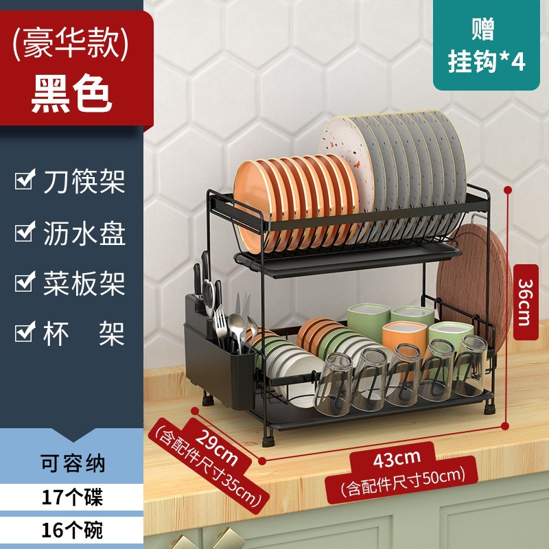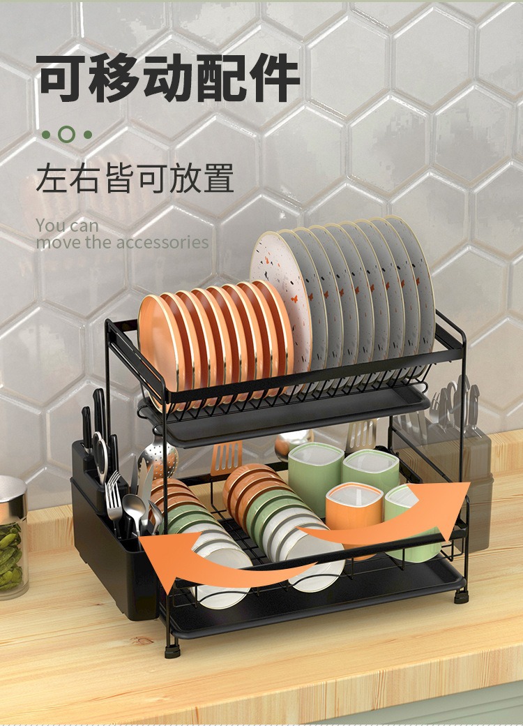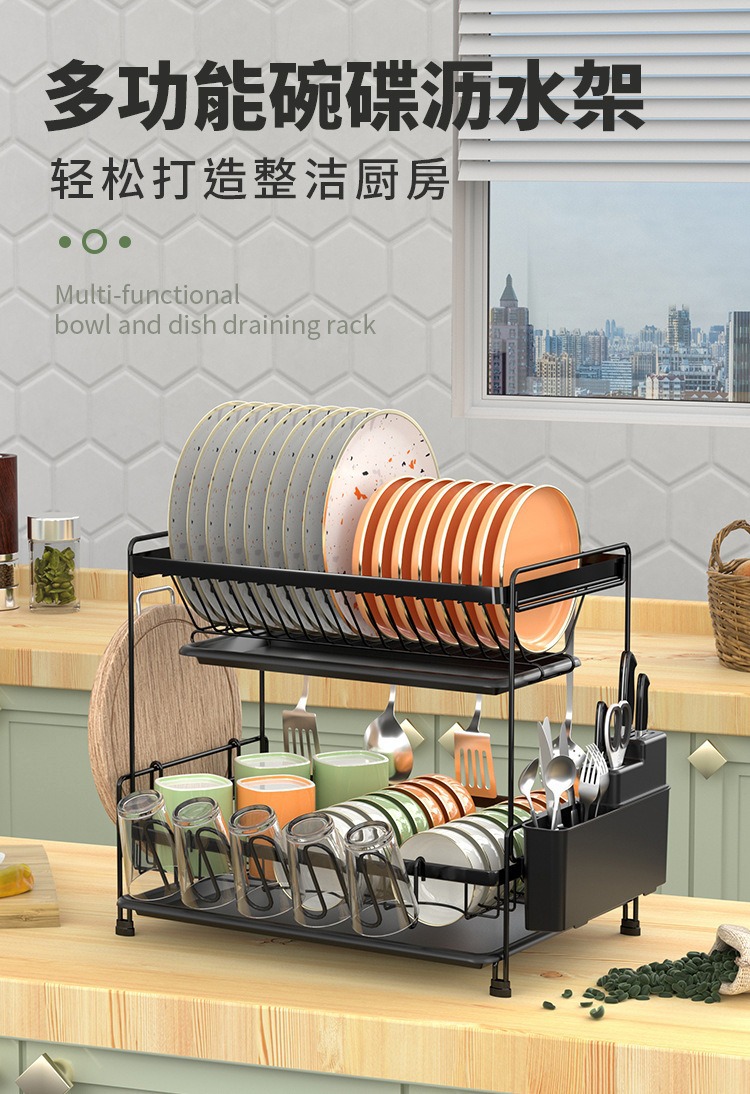 국경 간 주방 배수 랙 다기능 이중층 접시 랙 조미료 보관 랙 가정용 그릇, 젓가락, 칼 및 포크 보관 랙스토어 가기