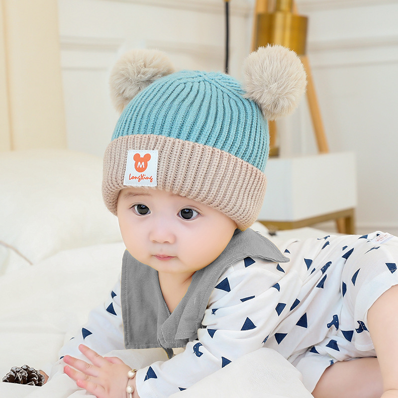 아기 남녀 공용 모자 가을 겨울 귀여운 볼볼 플러스 벨벳 두꺼운 방풍 귀 보호 어린이 모자 목도리 니트 모자