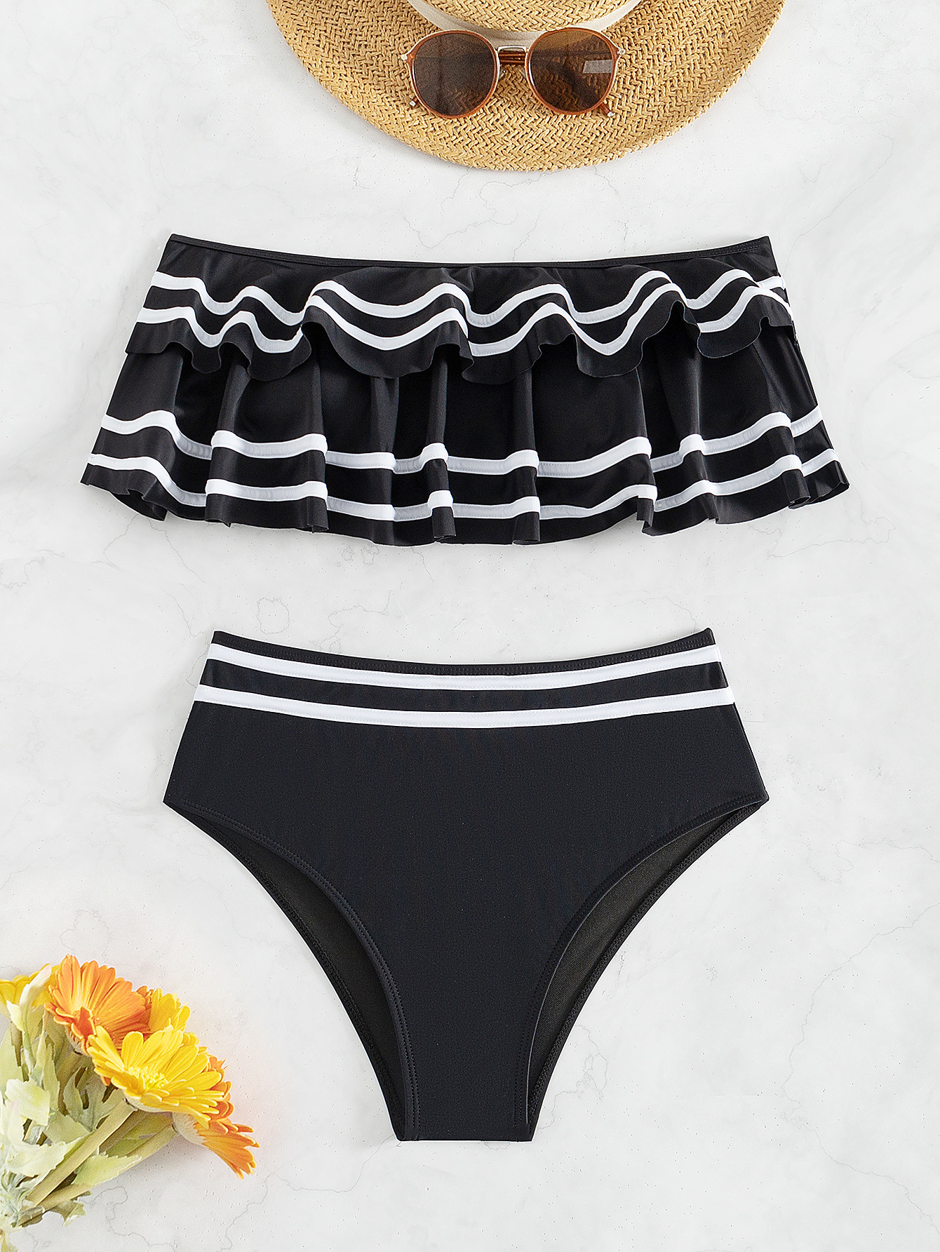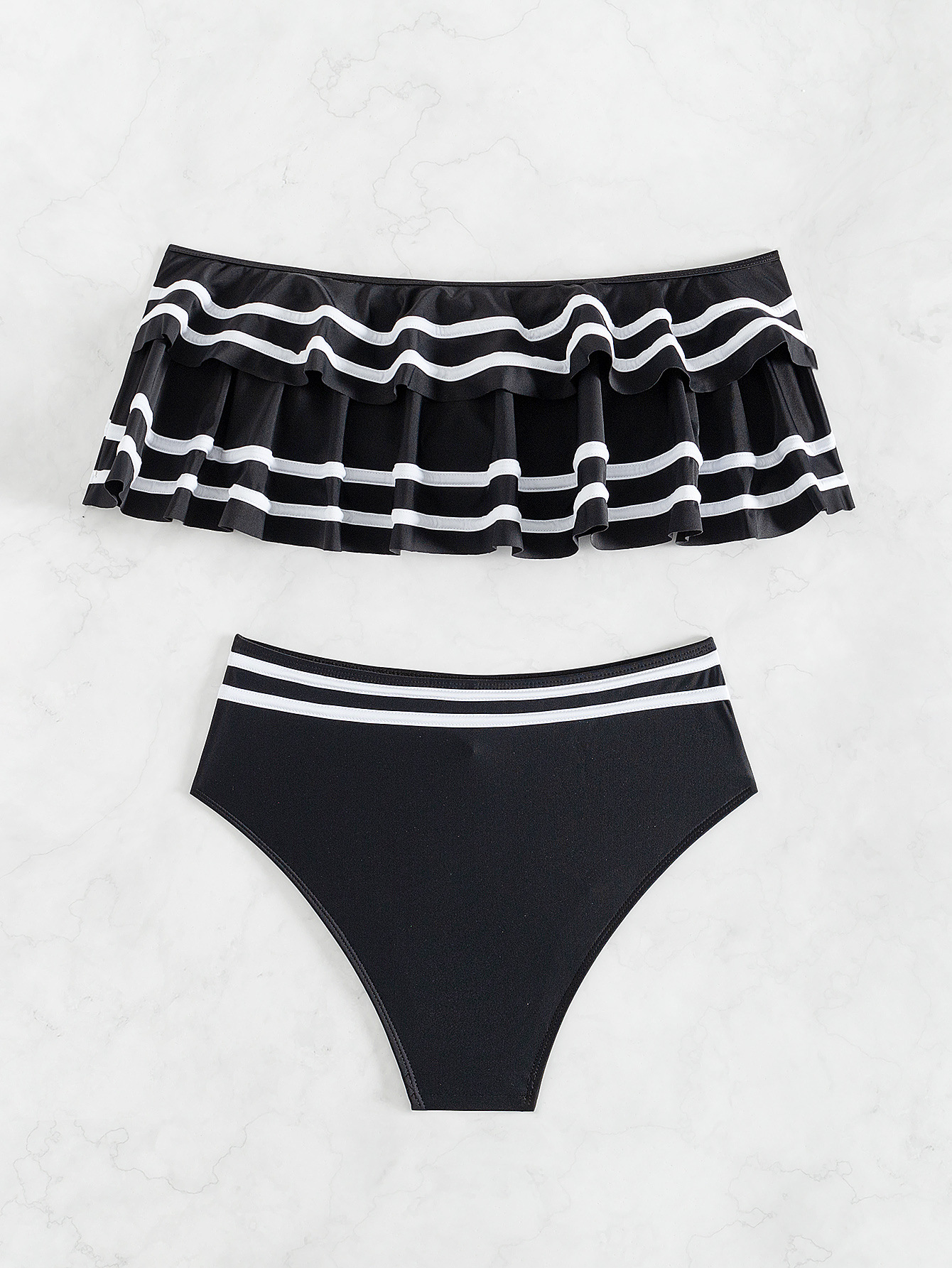 유럽과 미국의 새로운 분할 수영복 여성의 섹시한 솔리드 컬러 슬링 스트랩리스 백리스 비키니 하이 허리 크로스 보더 수영복 여성