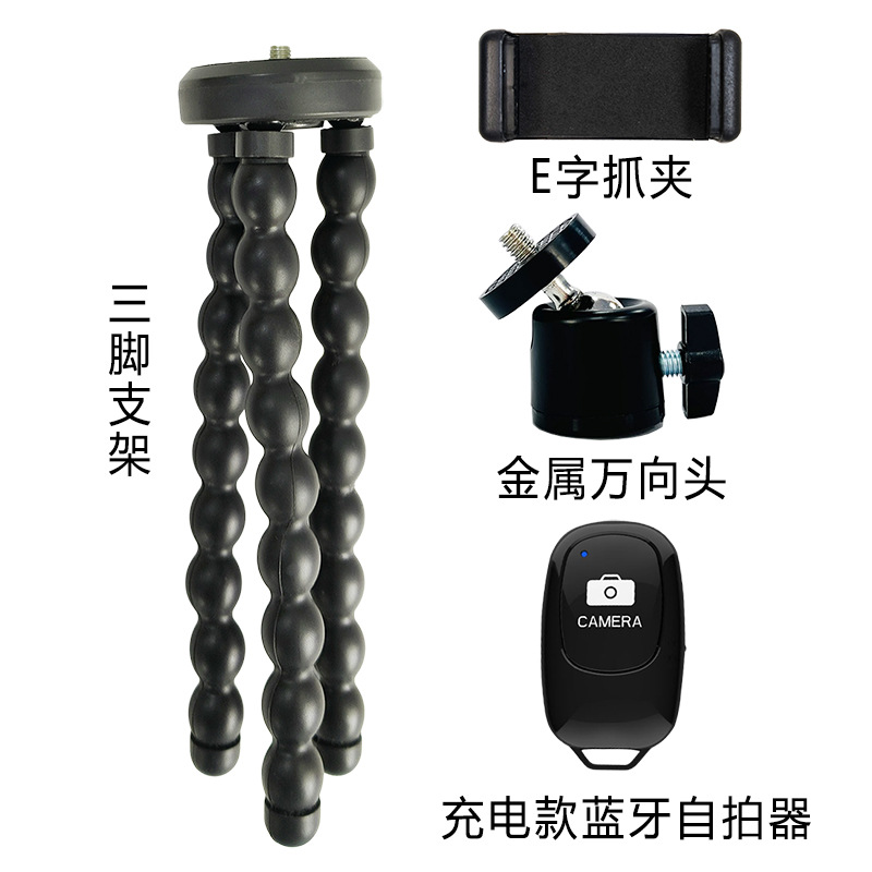 • 삼각대 + E자형 클립 + 유니버설 헤드 + 충전식 블루투스 셀카