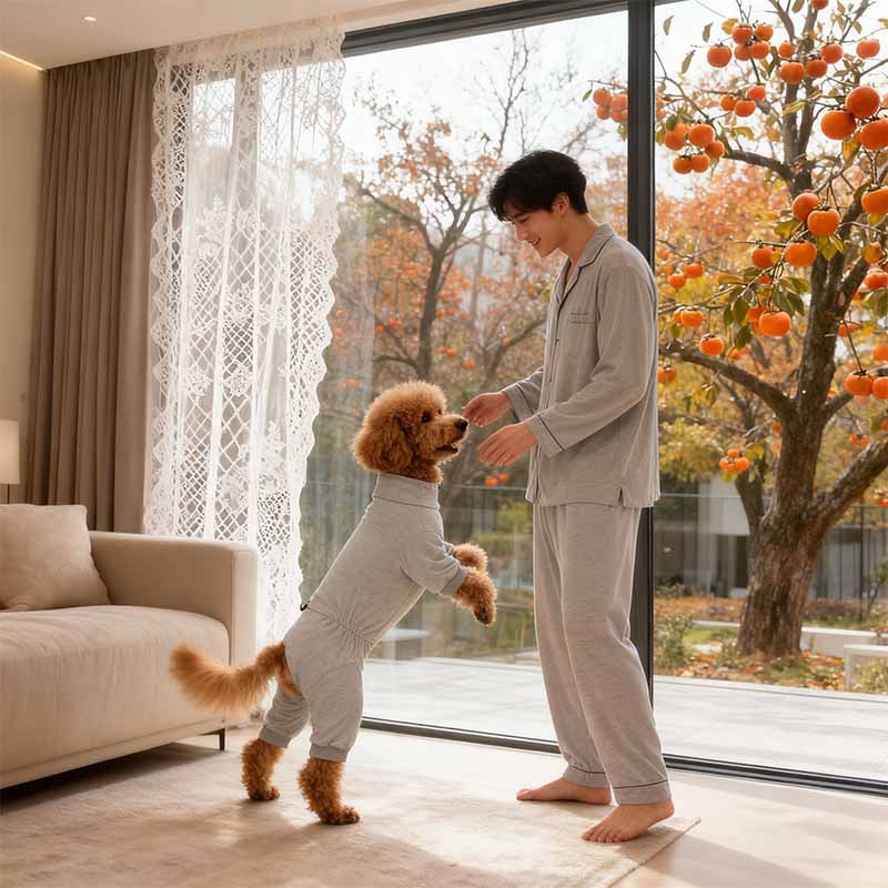 产品设计亮点:高领设计 脖围有橡筋猪鼻扣设计 可调节颈围 背长也有橡筋猪鼻扣设计 可调节背长尺寸 睡衣采用高弹面料 有很好的弹力 卡码无需拍大 建议 参考宠物背长适用尺寸选择