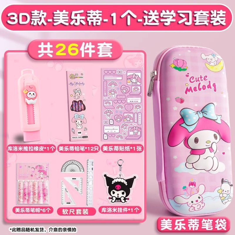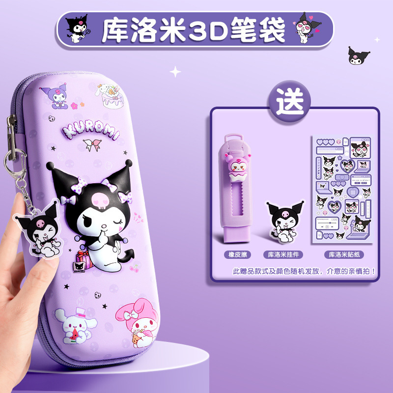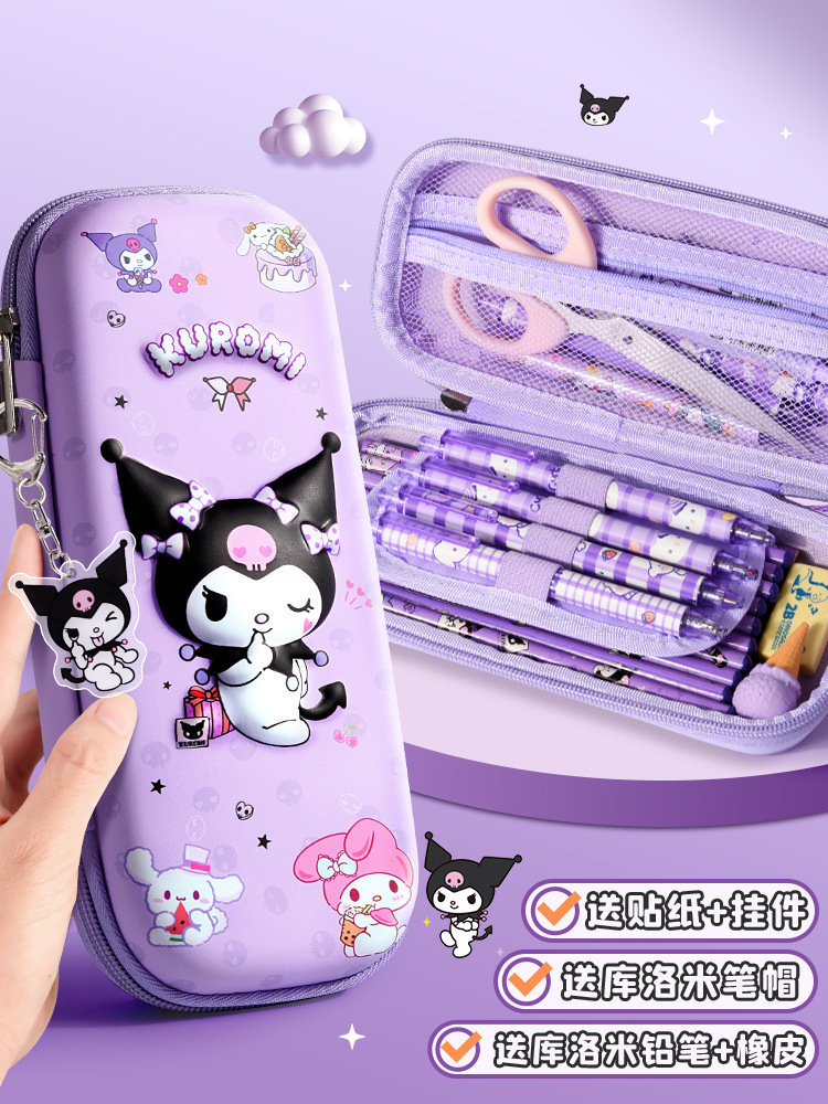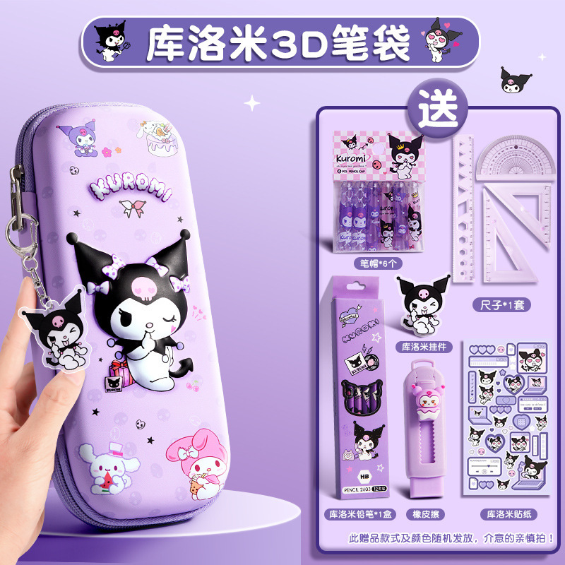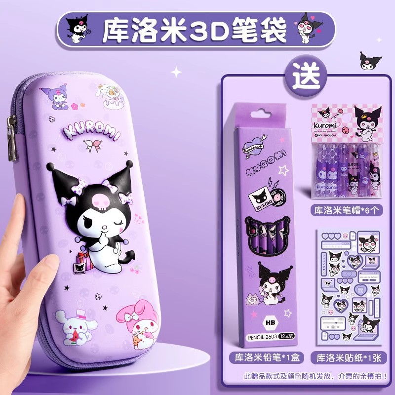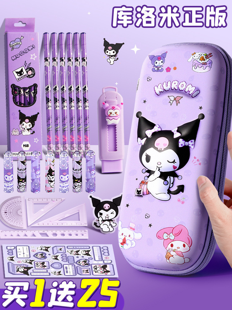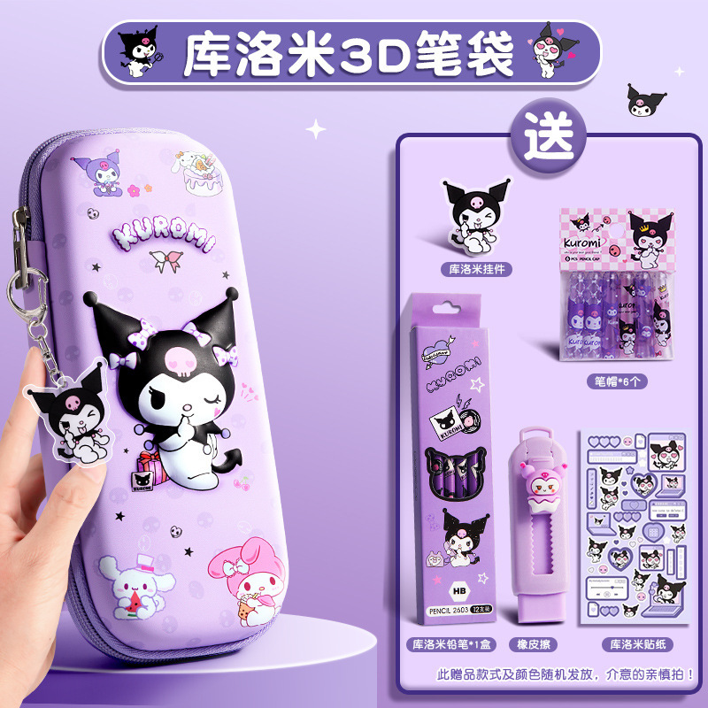 • 쿠로미 퍼플 1개에는 쿠로미 스티커 + 펜던트 + 푸시풀 고무 + 펜 캡 + 쿠로미 연필 + 소프트 자 + 롤 스티커가 함께 제공됩니다.