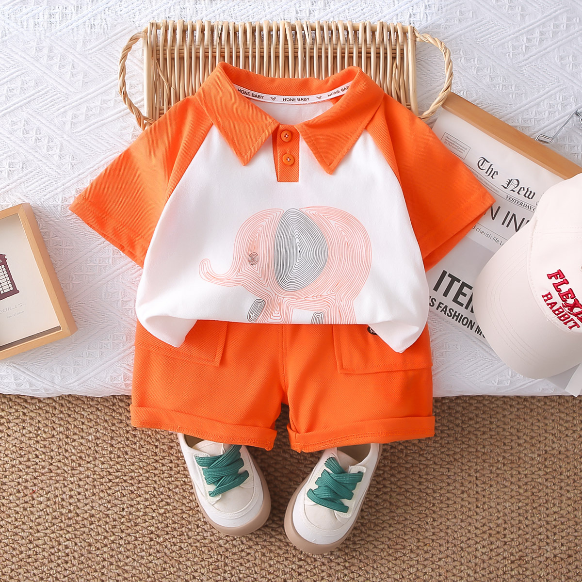 • 오렌지 X2517 엘리펀트 폴로 반팔 투피스 세트