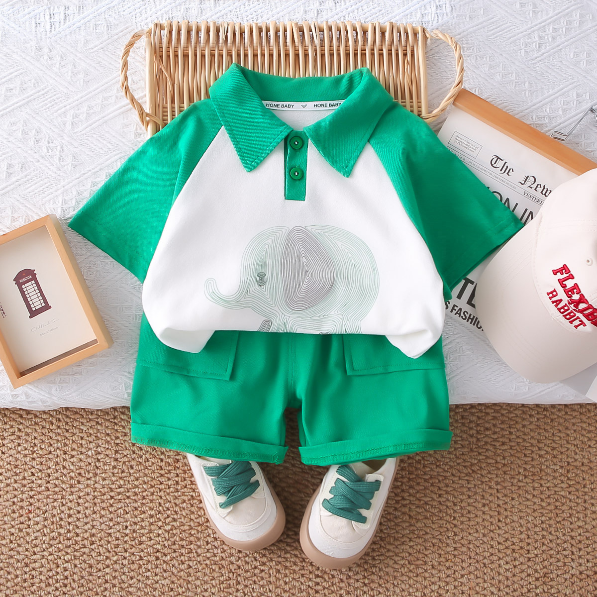 • 그린 X2517 엘리펀트 폴로 반팔 투피스 세트