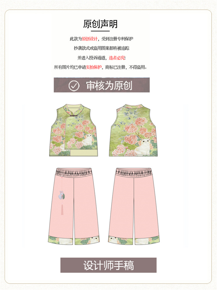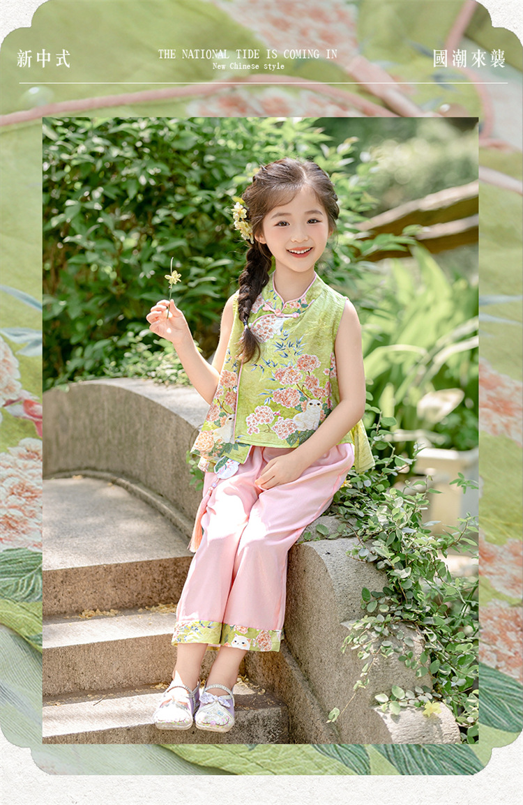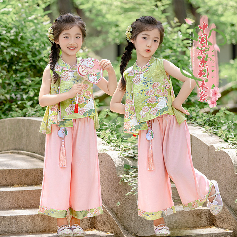 여자 중국 스타일 민소매 양복 여름 새 아기 Hanfu 얇은 어린 소녀 민족 고대 스타일 중국 스타일 투피스 세트스토어 가기