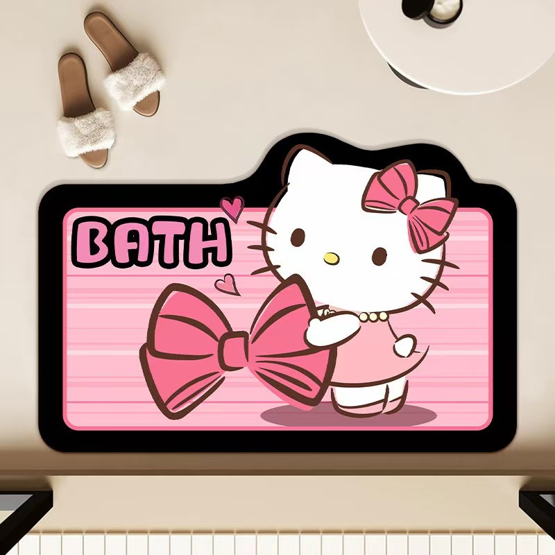 HelloKitty 만화 부드러운 규조토 진흙 욕실 바닥 매트 흡수성 미끄럼 방지 욕실 문 카펫 발 매트