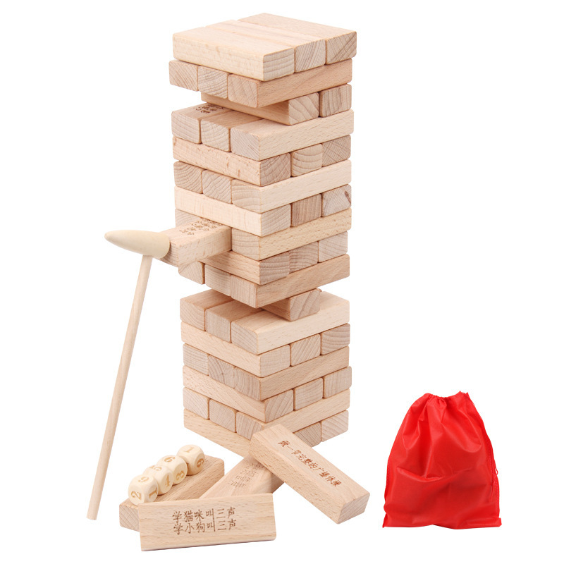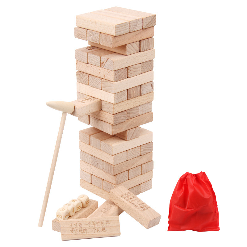 • 성인용 버전 Jenga(54개) + 주사위 4개 + 망치 1개 + 보관 가방