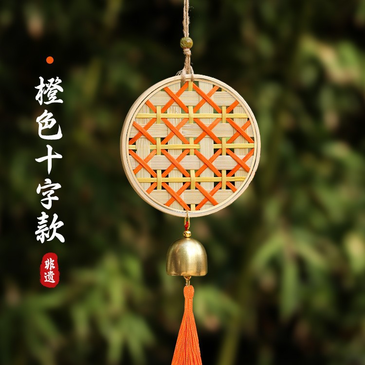 • 대나무 걸이 장식품 [주황색] 십자형 직조