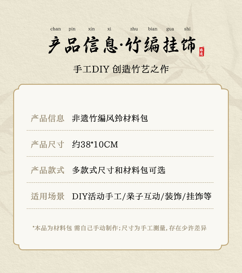 노동절 대나무 풍경무형문화유산 수제 DIY 재료 패키지 부모-자식 팀빌딩 워밍업 활동 대나무 펜던트 제작스토어 가기