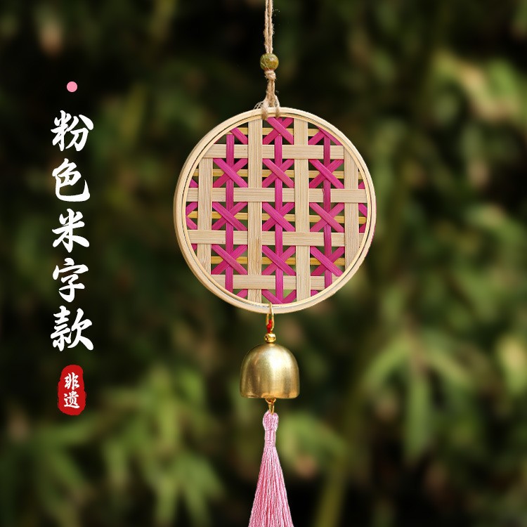 • 대나무 걸이 장식품 [핑크색] 십자형 직조