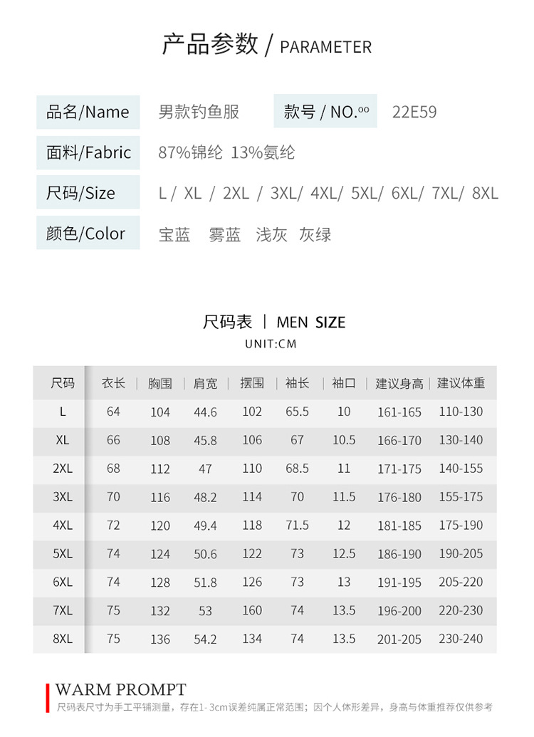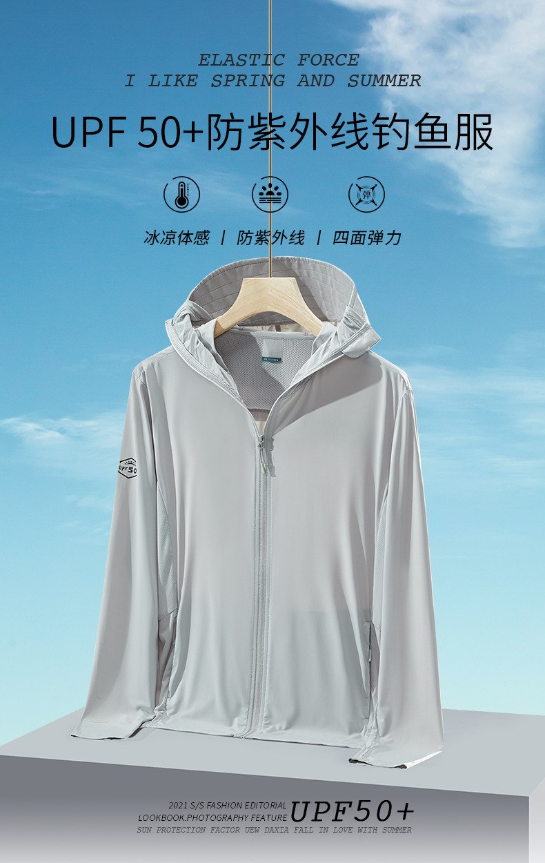 남성용 자외선 차단 의류, 야외 낚시 낚시 의류, 오리지널 원사 얼음 느낌, 초박형 통기성 자외선 차단 의류, 자외선 차단 YKK 지퍼
