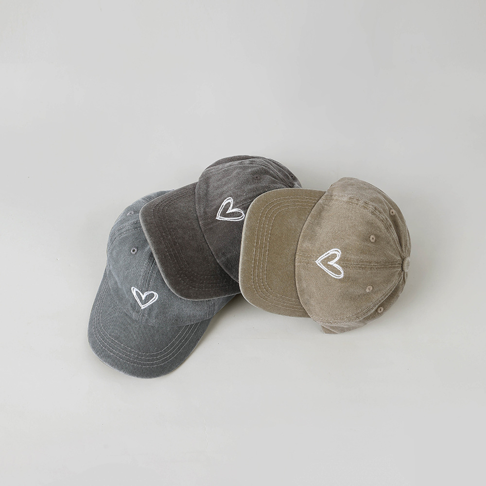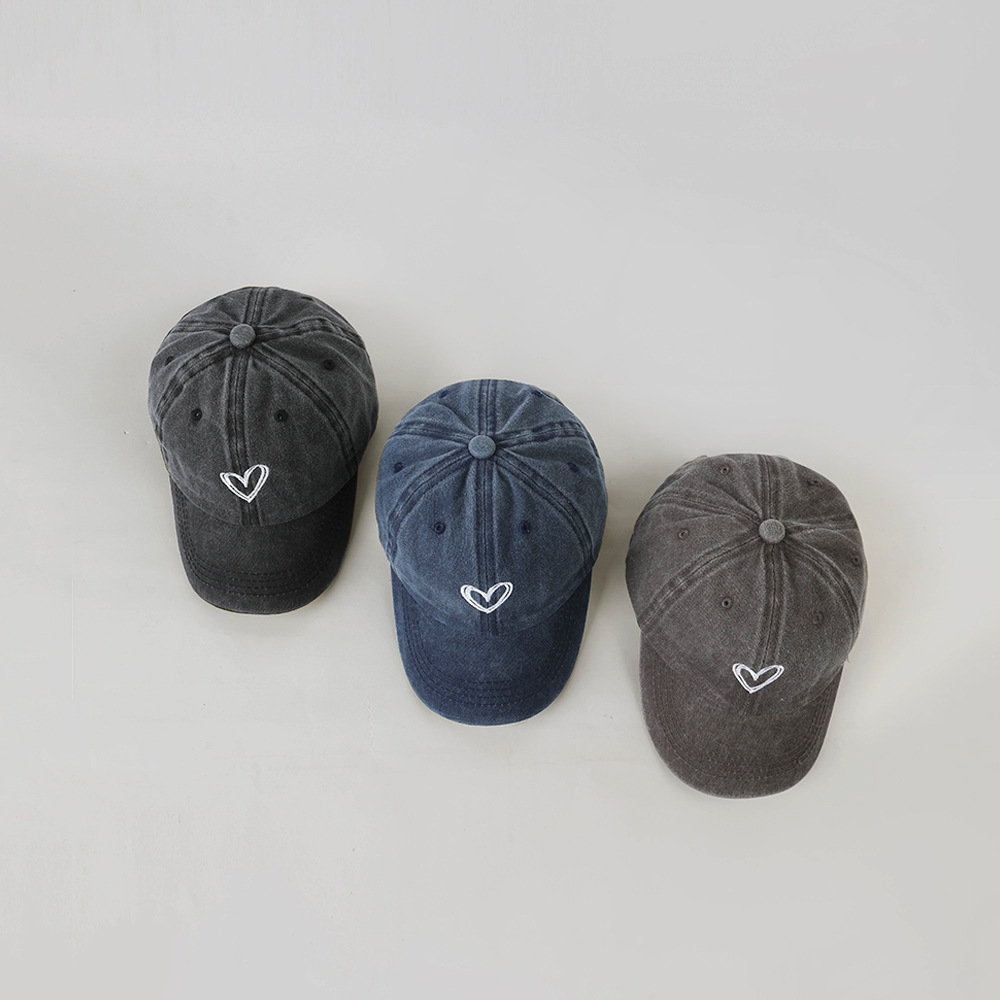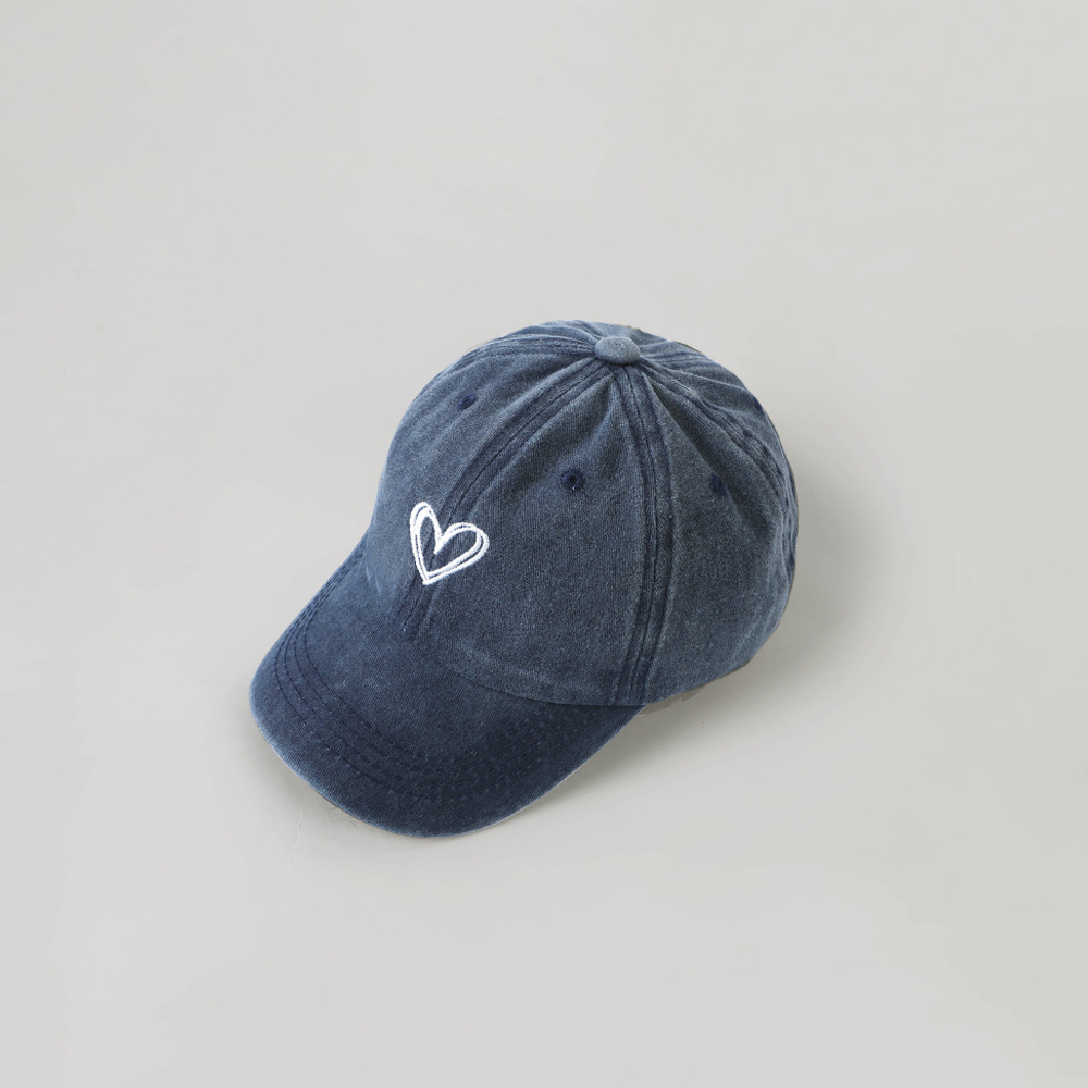 한국 스타일 Ins 세탁 데님 빈티지 어린이 모자 라인 사랑 자수 단순 성격 고민 야구 모자